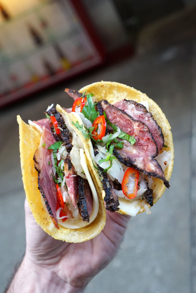 (6) Pastrami Bacon: Pastrami and bacon are two words that perhaps don’t belong together in the NYC Jewish community, as it is straight up not Kosher for Passover, but this was pure heaven as far as sinful eating goes. Crispy, fatty, meaty and all around perfectly cooked, this grill-kissed slab bacon came with a velvety honey mustard sauce that actually paired great with all of the meats we tried.