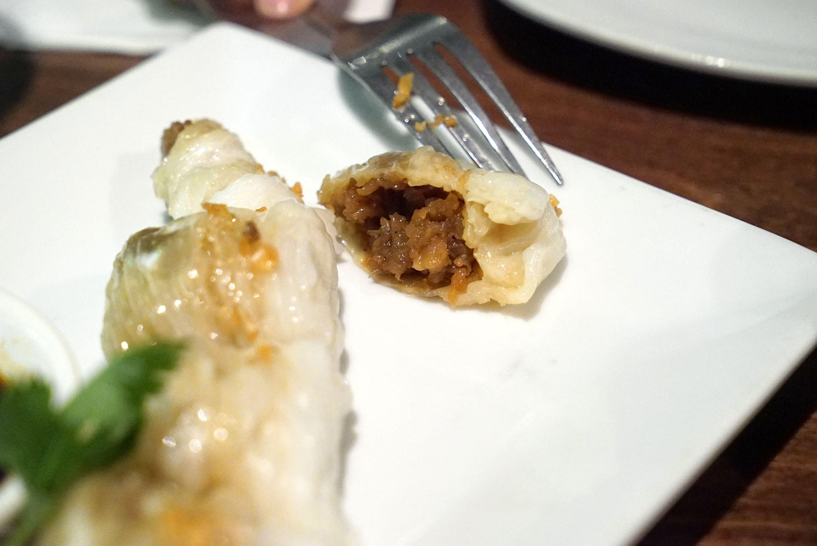 The wrapper had the texture of a really nicely executed dim sum dumpling, but it held up to cutting without falling apart. Really tasty and healthy to boot.