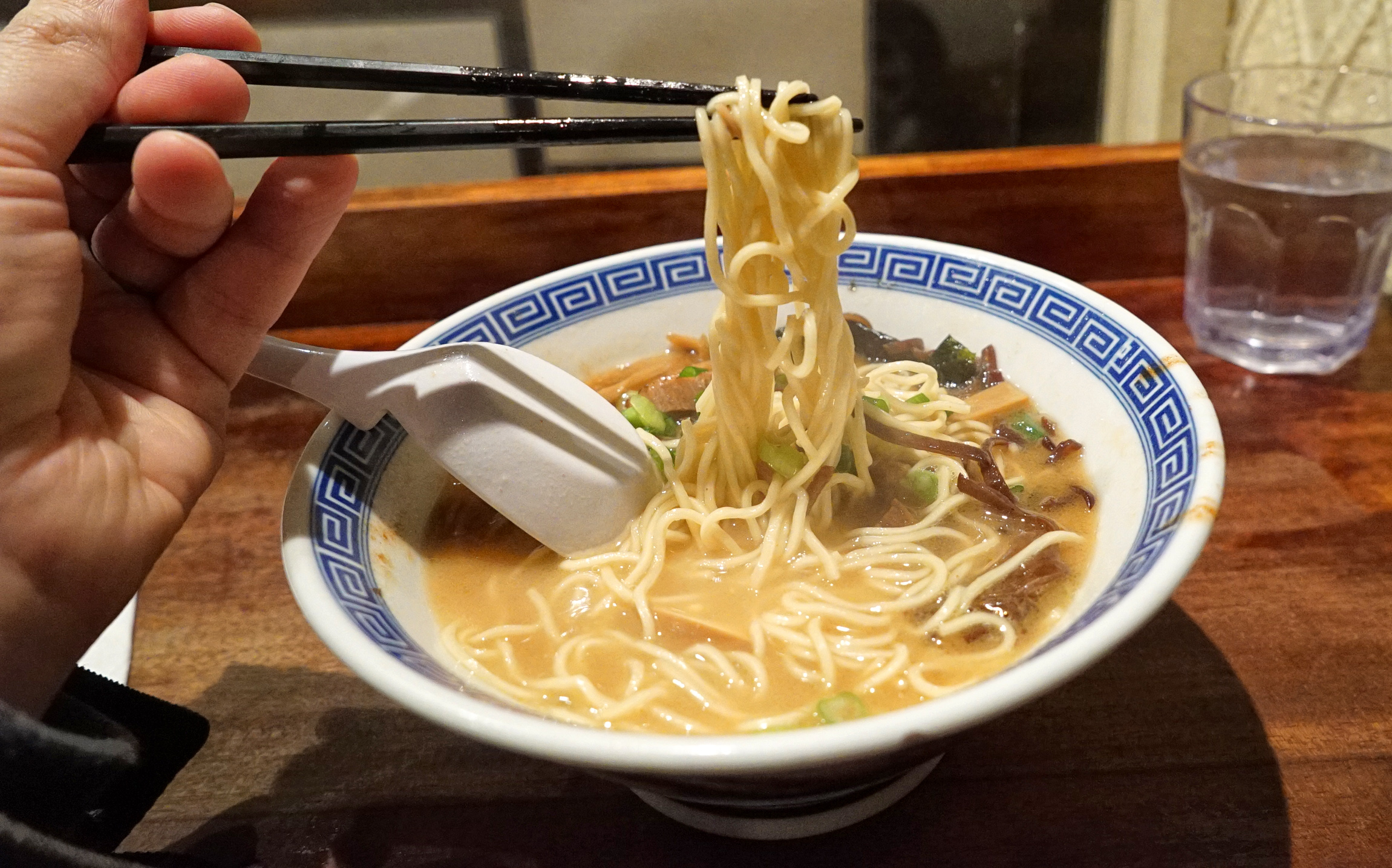 Tokyo: This ramen is usually made with pork and chicken broth and typically features slightly curly, somewhat wide noodles. Very often in Toyko you’ll find broths that are flavored with dashi (broth made from aged bonito flakes and sea kelp). This style of ramen is generally seasoned with shoyu and has a medium-thickness. It’s similar to Yokohama ramen, though that tends to be heavier and meatier than the dashi broths of Tokyo ramen.