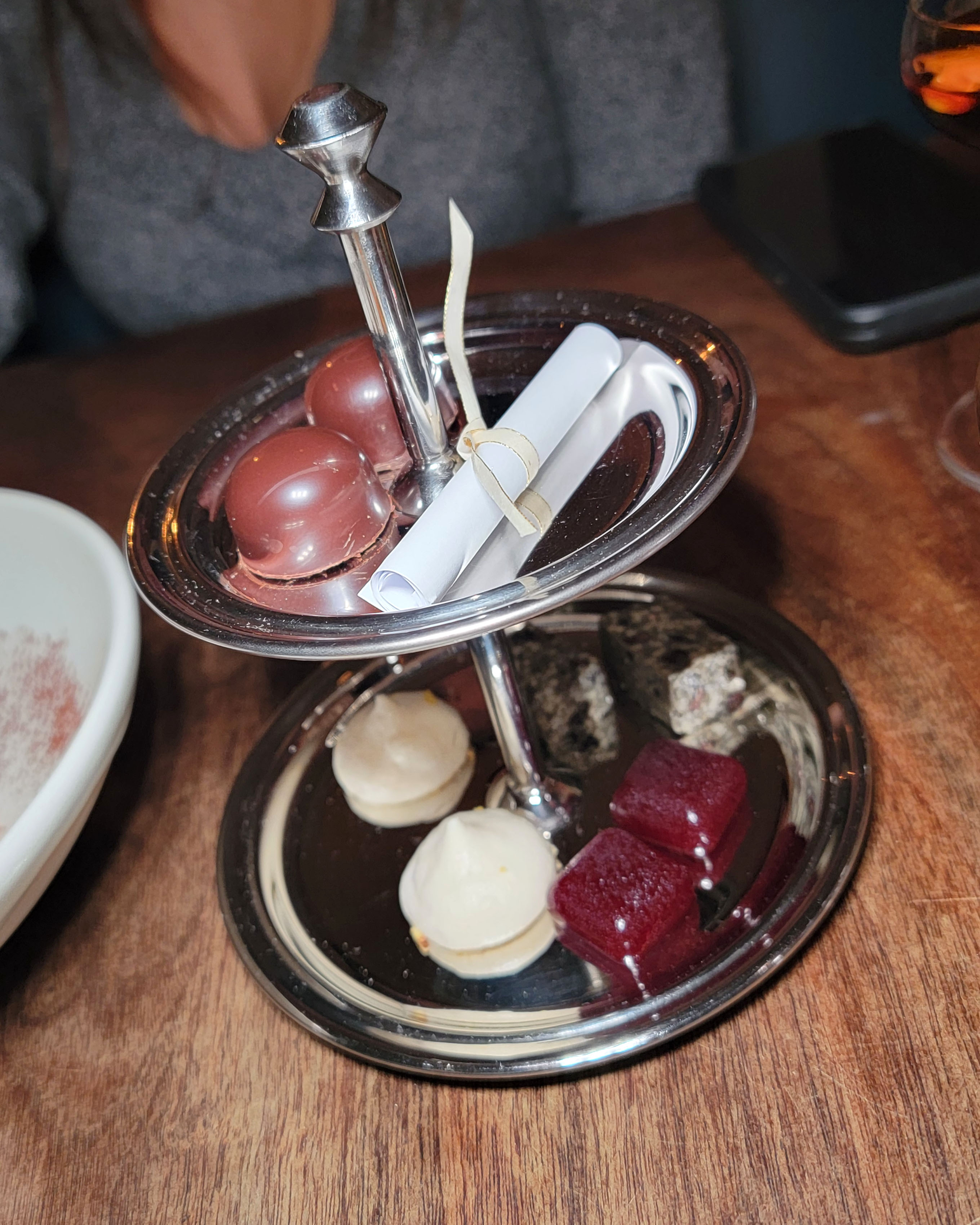 One other negative to note here: there was some sort of eyelash or eyebrow hair in my wife’s amaro. We didn’t say anything, but the level of service here was incredible so I’m sure they would have gotten us a new pour if we asked. It was late, and we were tired, full and otherwise very happy. The staff definitely pays attention to the notes you put on your reservation. A few different people made conversation with us a few times about it being our anniversary. Great staff! I will be back for the steak options.