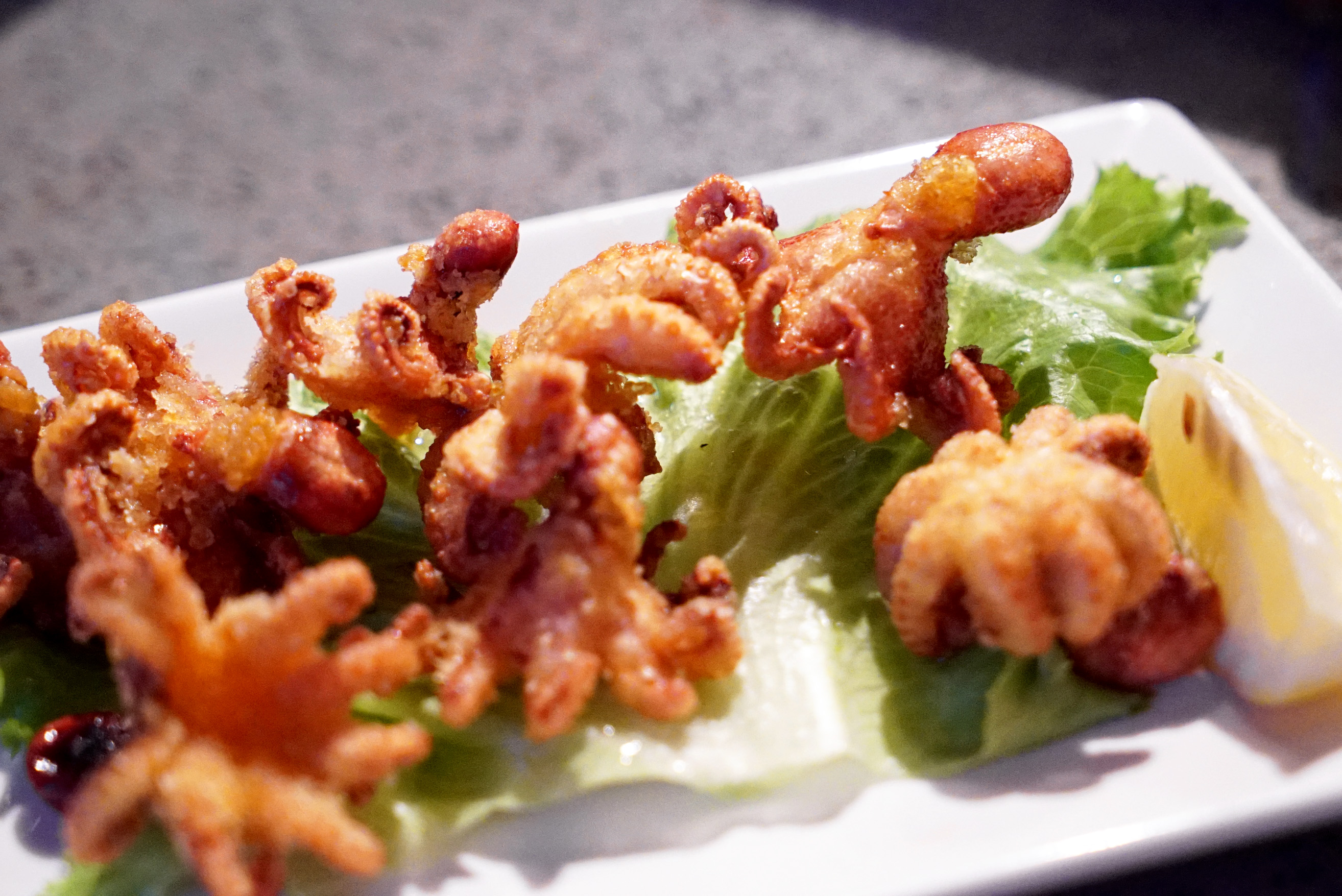 They offer happy hour from 4pm to 7pm, and allow you to take advantage of those deals from your table. $4 beers is a pretty great deal, for one, but there are others as well. We started by sipping on this cocktail made with citron vodka, canton, fresh ginger and lime called the Springter. It was incredibly refreshing and bright.