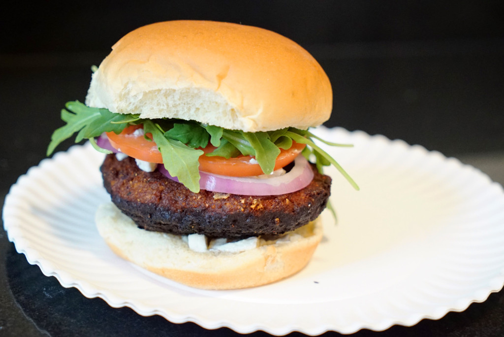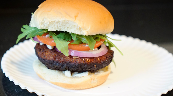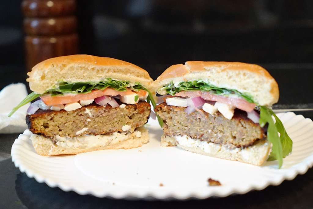 As you can see, this leans a bit more on the falafel side than the burger side. Add more meat and you’ll see some pink in there for a nice medium.