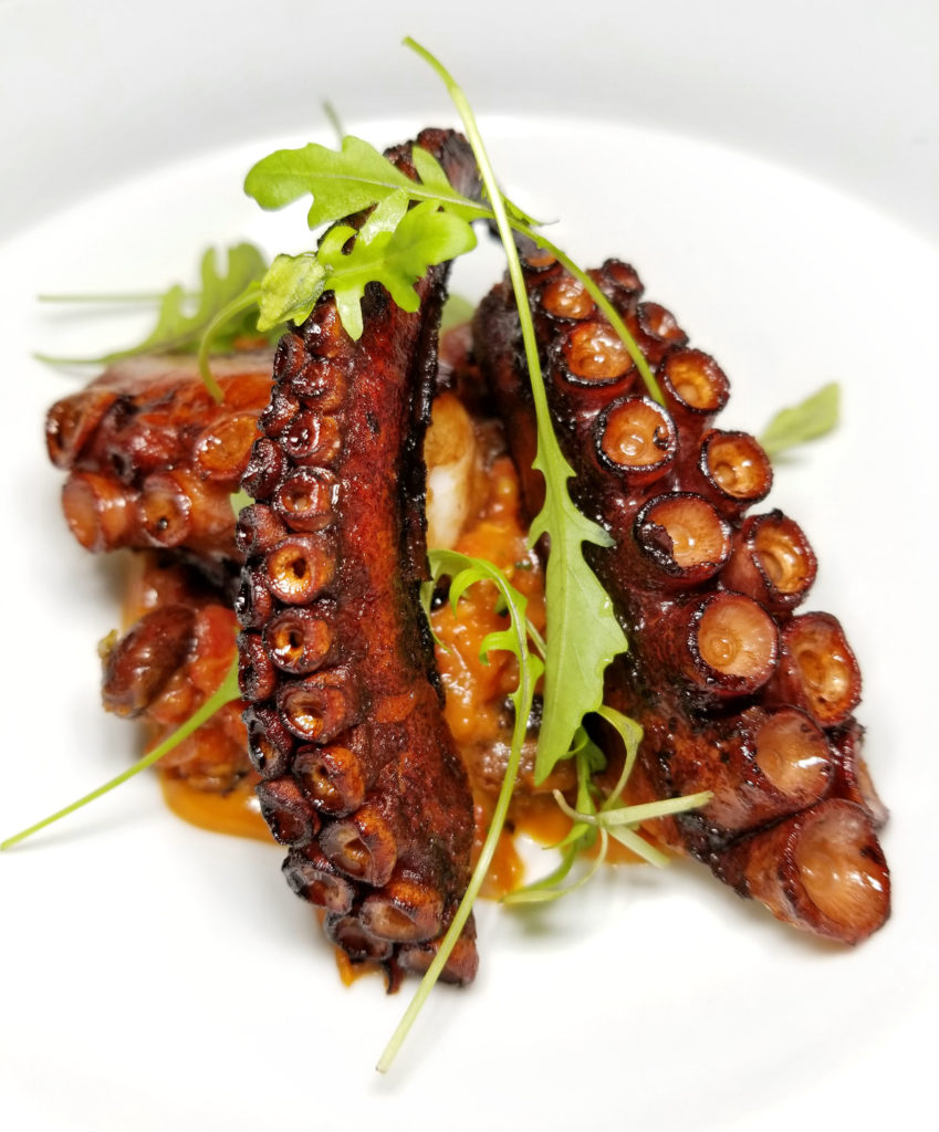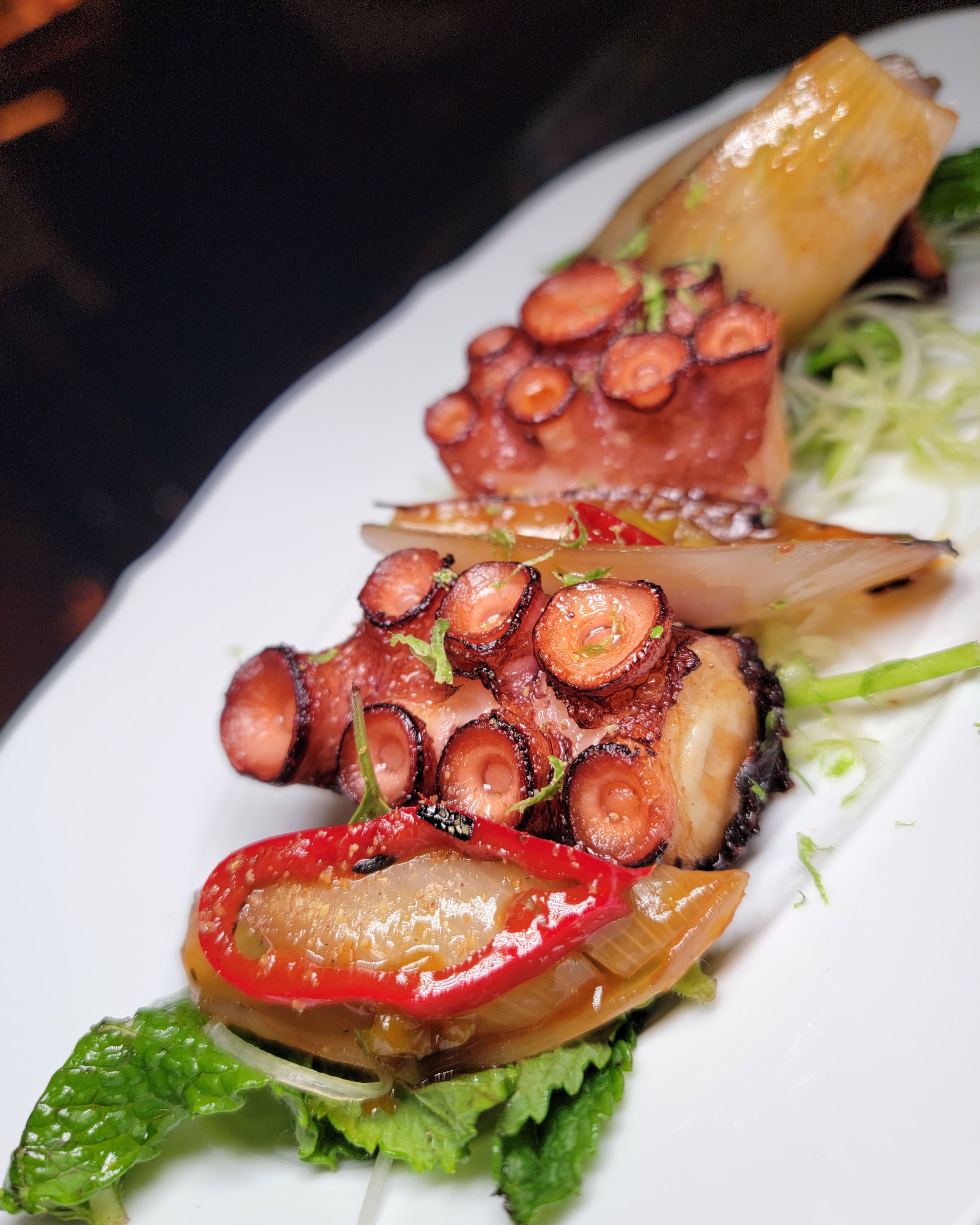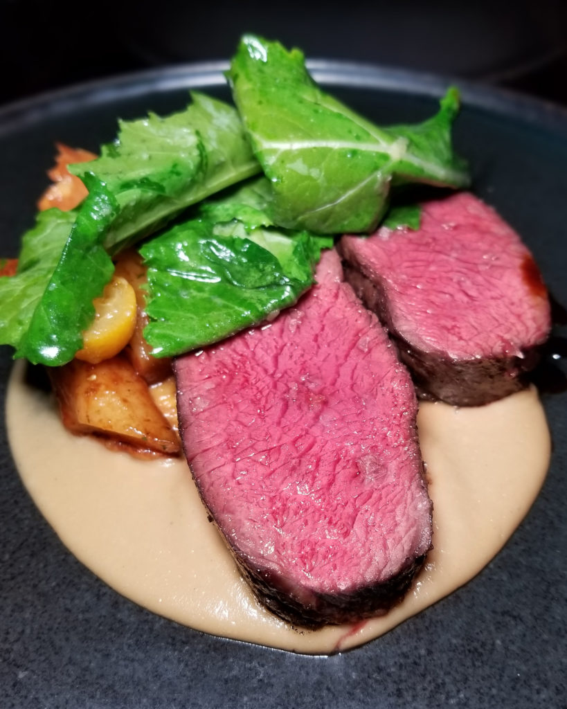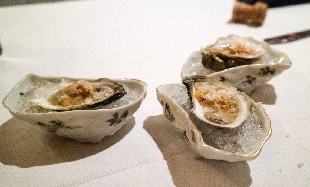 The “mixed grill” course had a few components. First was a Rhode Island oyster with dill, smokey grilled cherry mignonette and fresh ground horseradish. This was an excellent bite. By far one of the better dishes served.