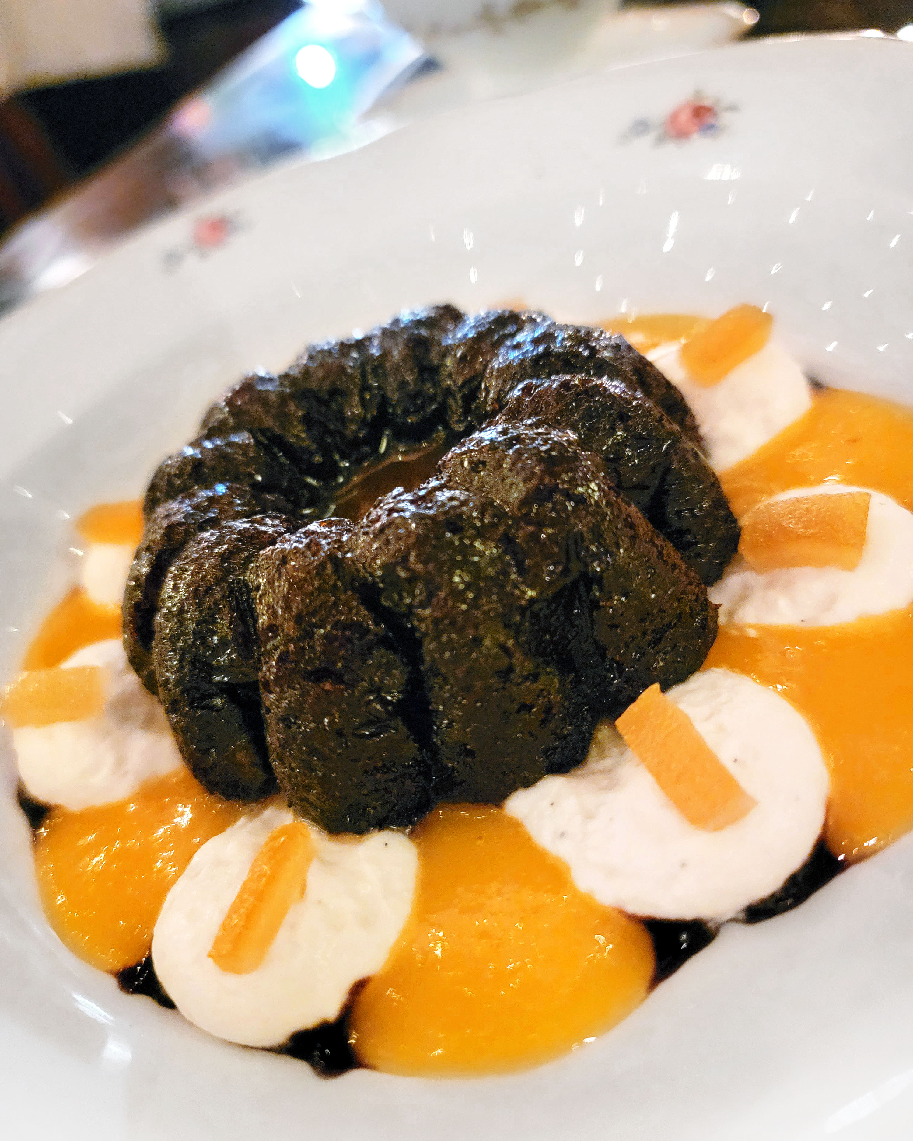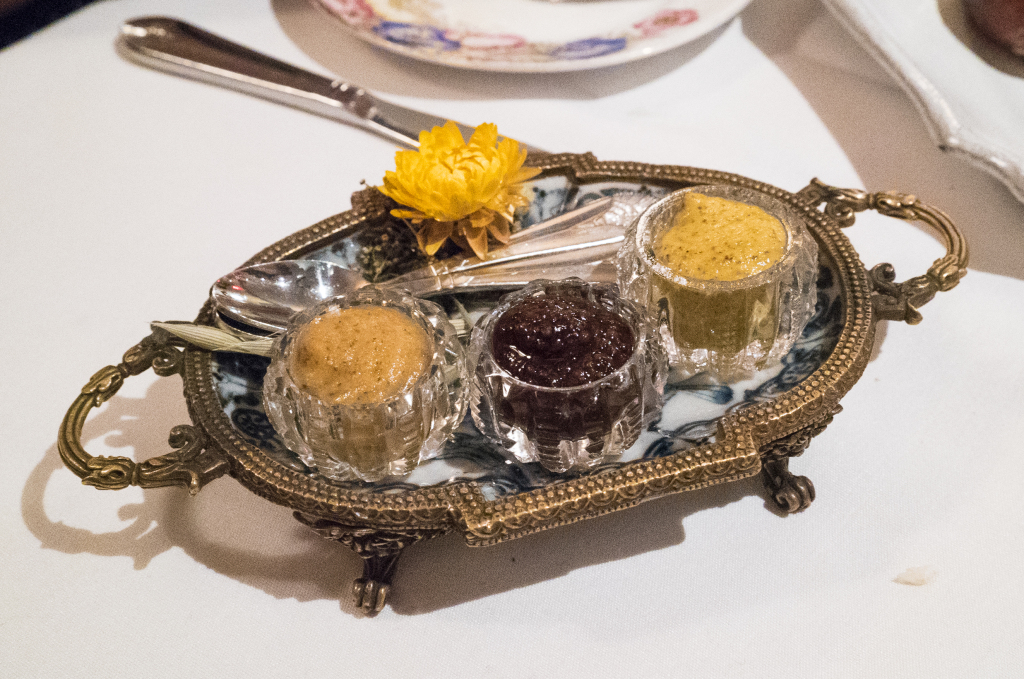 The last part of the mixed grill was a veal terrine made with tongue, tail, sweetbreads and carrot sausage with pickled fennel salad and smoked brioche pretzels. There were three mustards too: Bavarian, fig, and nectar. My favorite was the nectar. Since there were three of us dining, I was sort of hoping we would each get a slice of terrine. Not the case. I think it is usually one slice per two guests, so we did get a little more than what is typically served. Still not quite enough in my opinion.