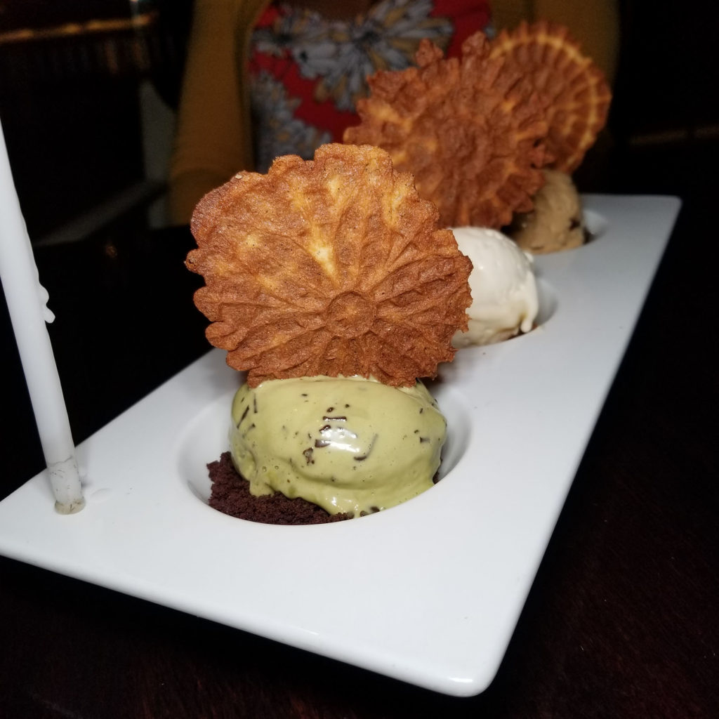Italian rainbow/tricolor almond/orange sponge cake with chocolate ganache, almond slivers and custard. This was quintessential Italian. The back of the slice was the tricolor cookie/cake. It was beautiful, but not my type of dessert per se. Again I was expecting a third slice here since we were three diners. But again I think the regular portion is one slice for two diners. In this case it was enough for the three of us since none of us particularly loved this dish.