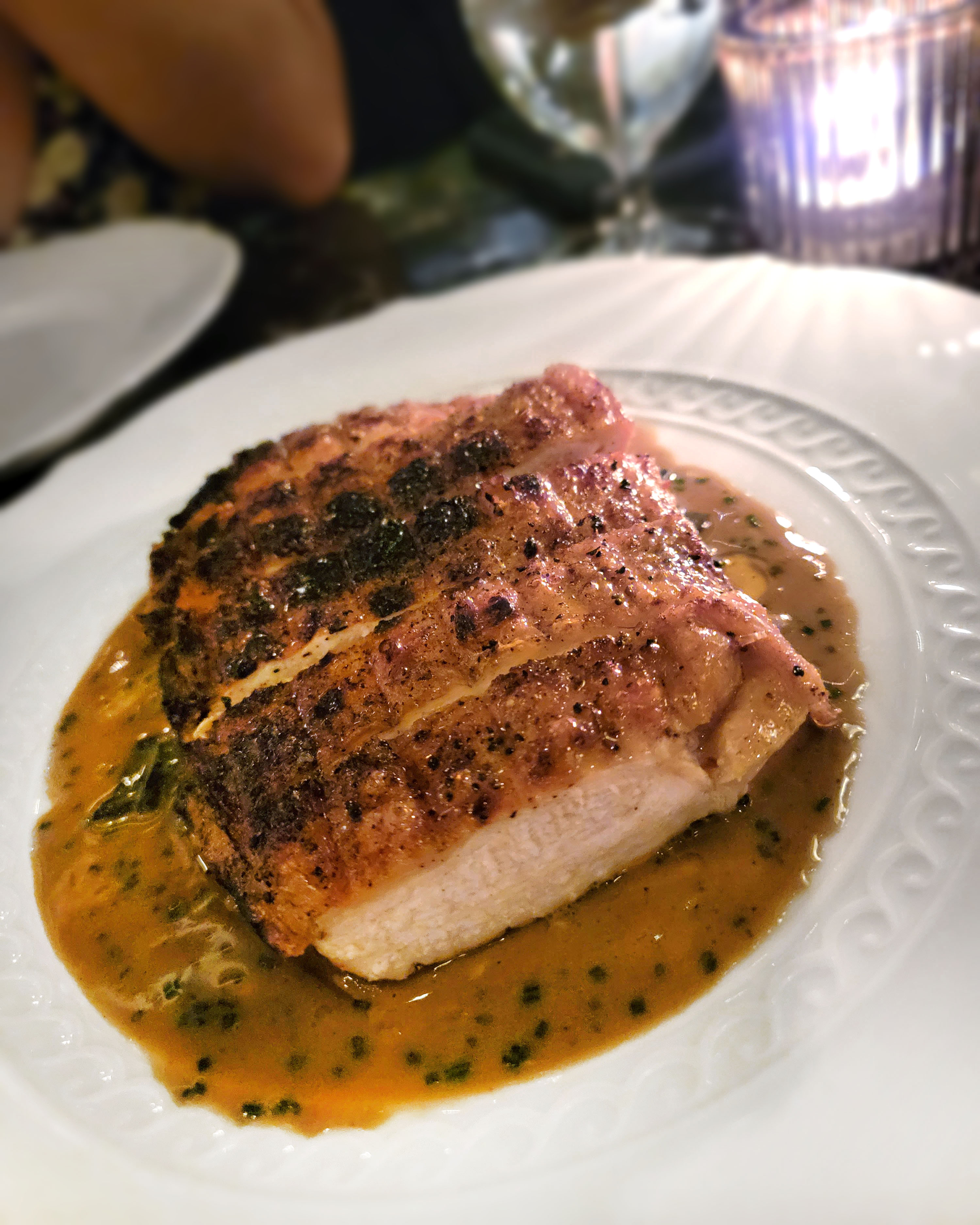 Sheep’s milk gnocchi with chestnut, chives and brown butter ragu with shallots and pecorino. This was a sweet pillow of pasta. Dessert pasta, almost. Very well done though.