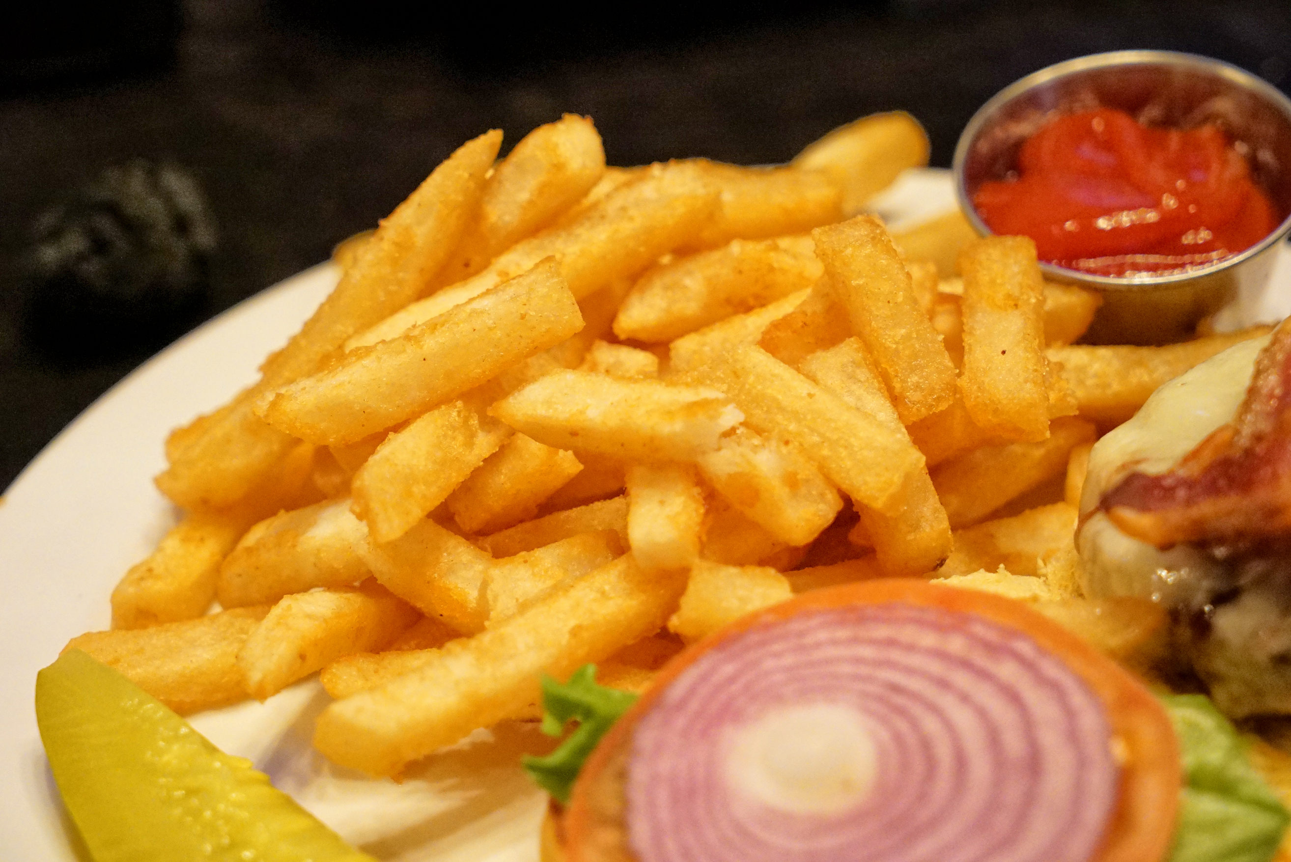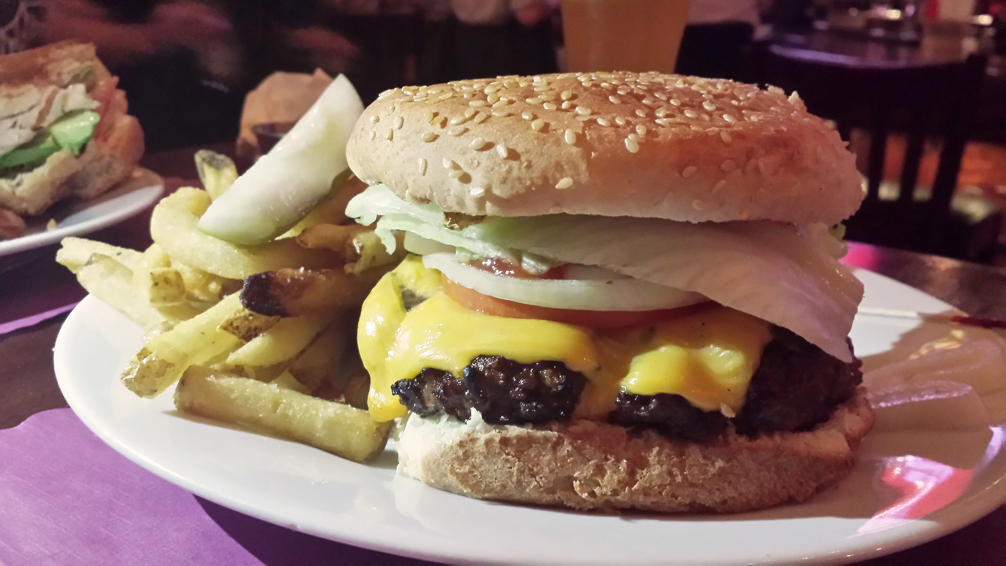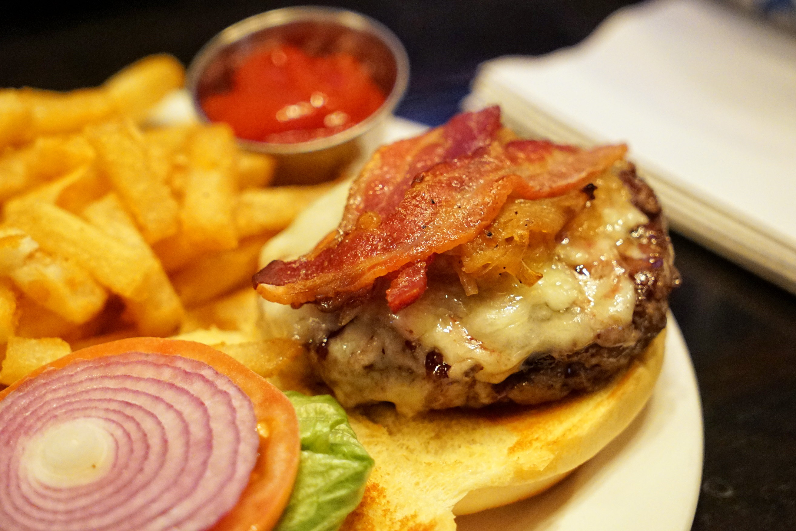 This was easily the best burger of the night. Juicy, nicely cooked, a good amount of cheese. Nice and simple. The only down side was that the fries were a bit under-seasoned, and the bun was a little hard or crumbly after toasting. Stick with the potato bun!
