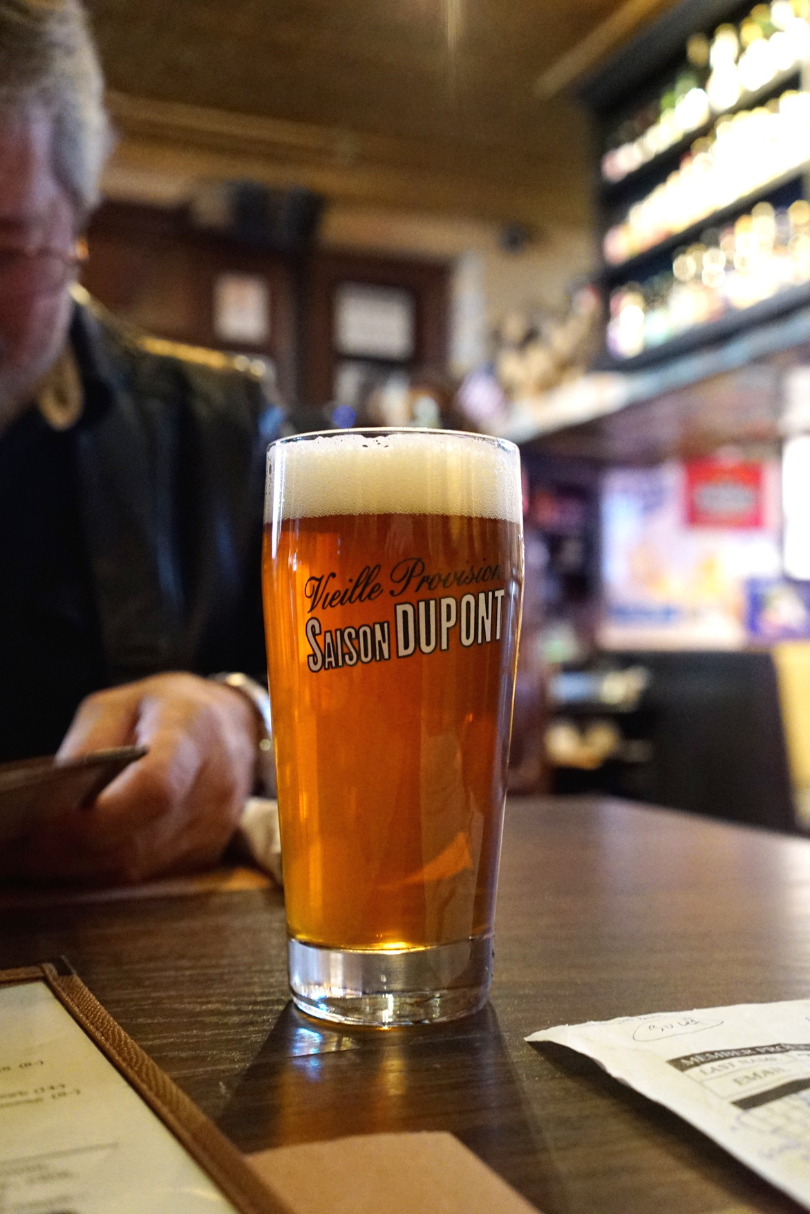 My buddy, whose opinion I value when it comes to food, swears by the burger at Ear Inn, and also the atmosphere here. Here he is, giving you all the finger in front of my beer: