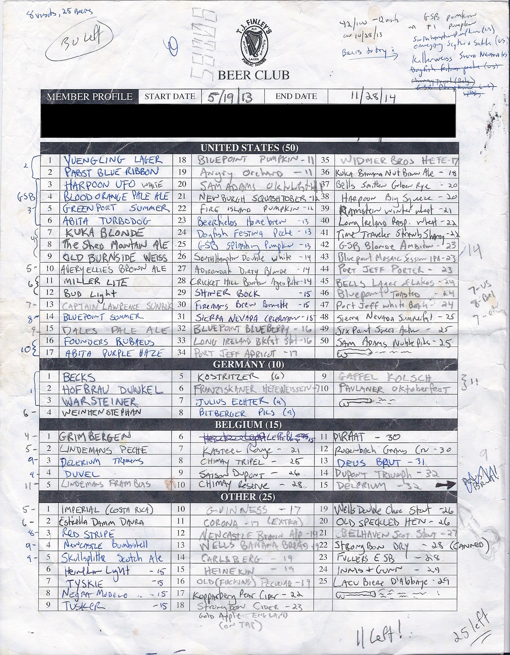 A little over a year ago I joined their beer club, which essentially means you have to drink 100 different beers from various regions of the world: 50 US, 10 German, 15 Belgian, and 25 other. I currently have something like 11 left. Toward the end it gets harder to find stuff that you want to try to plug in the holes, but the great part is that I get to keep going back and eating the delicious food.