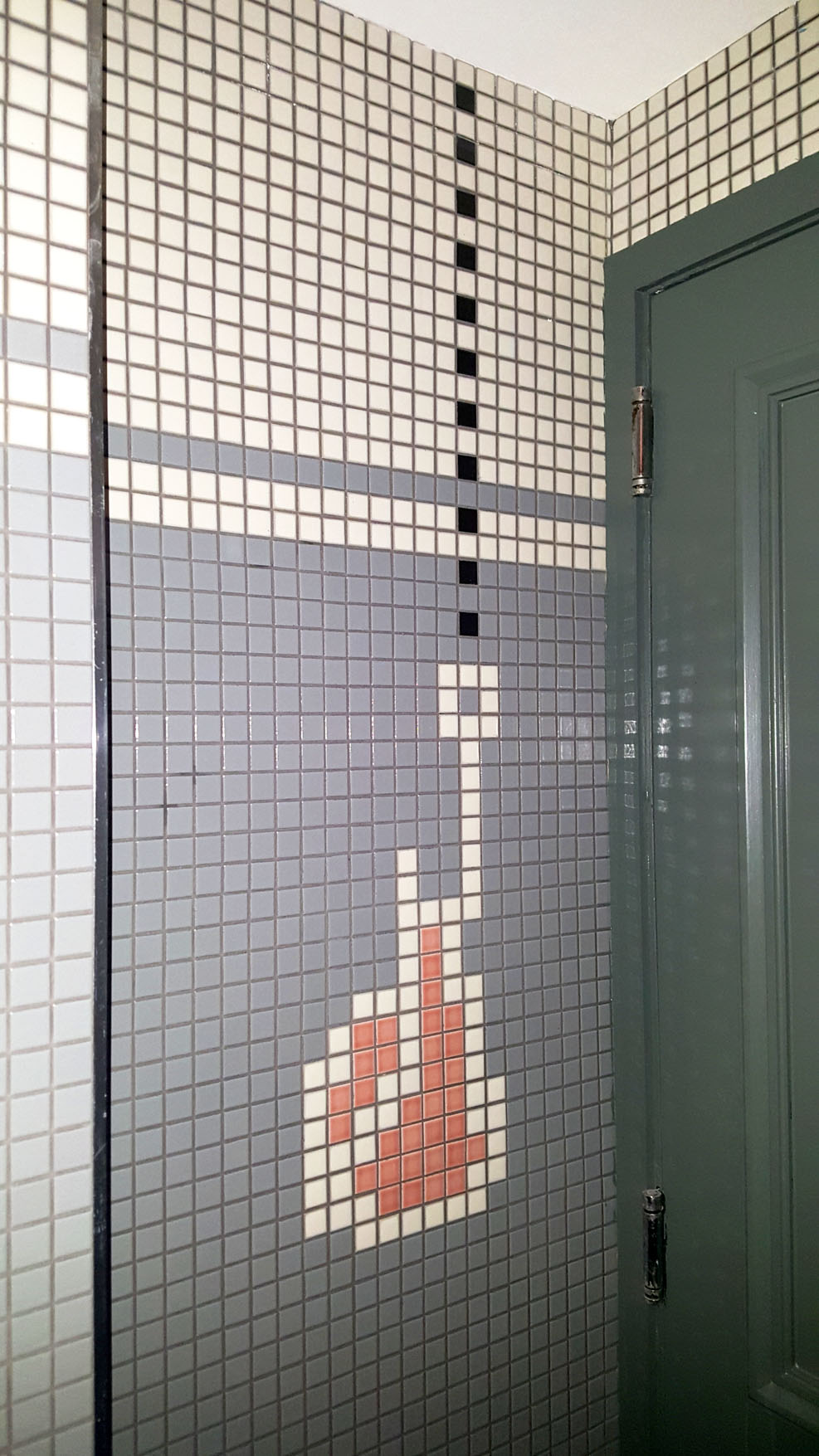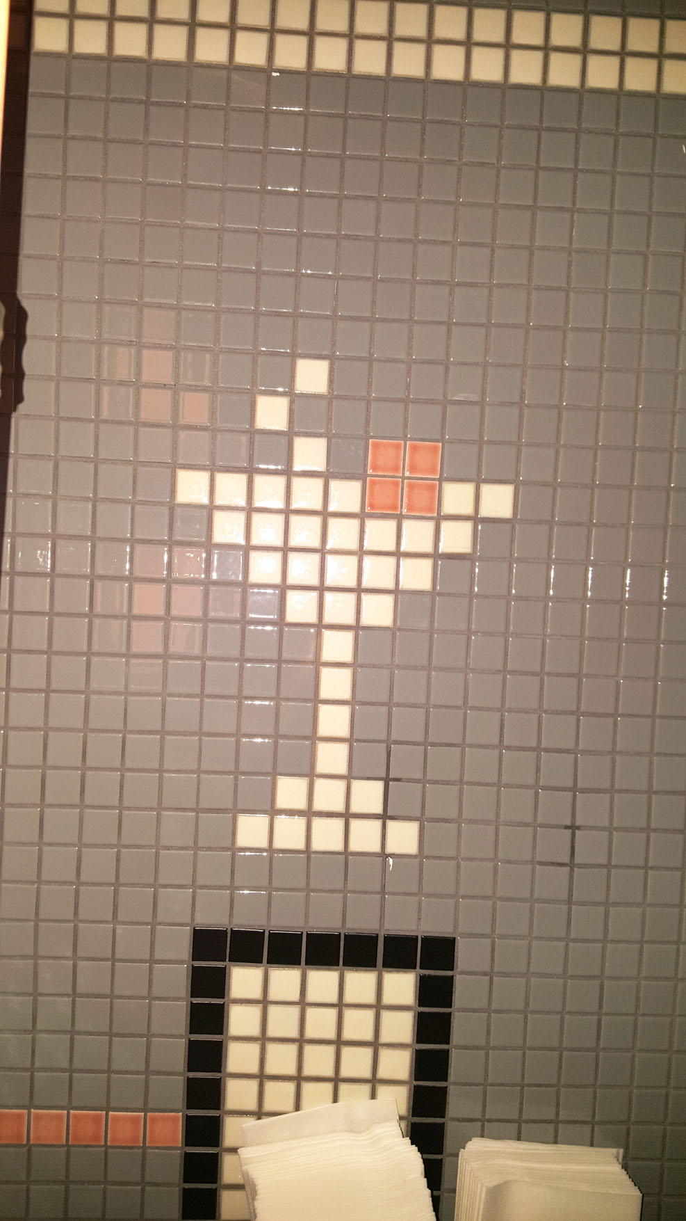 There’s even some some meat- and drink-related tile work in the bathroom. It’s like an Atari game from the 80’s.