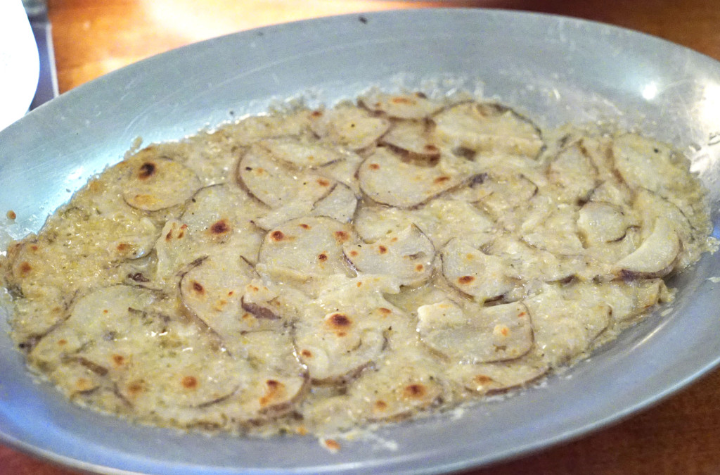 Sunchoke is the root of a sunflower. If you’ve never had it before, it tastes like a mix of artichoke and potato. It is one of my favorite starch-veggie items in the world. This was done beautifully, like a scalloped potato dish with some broiled cheese on top.