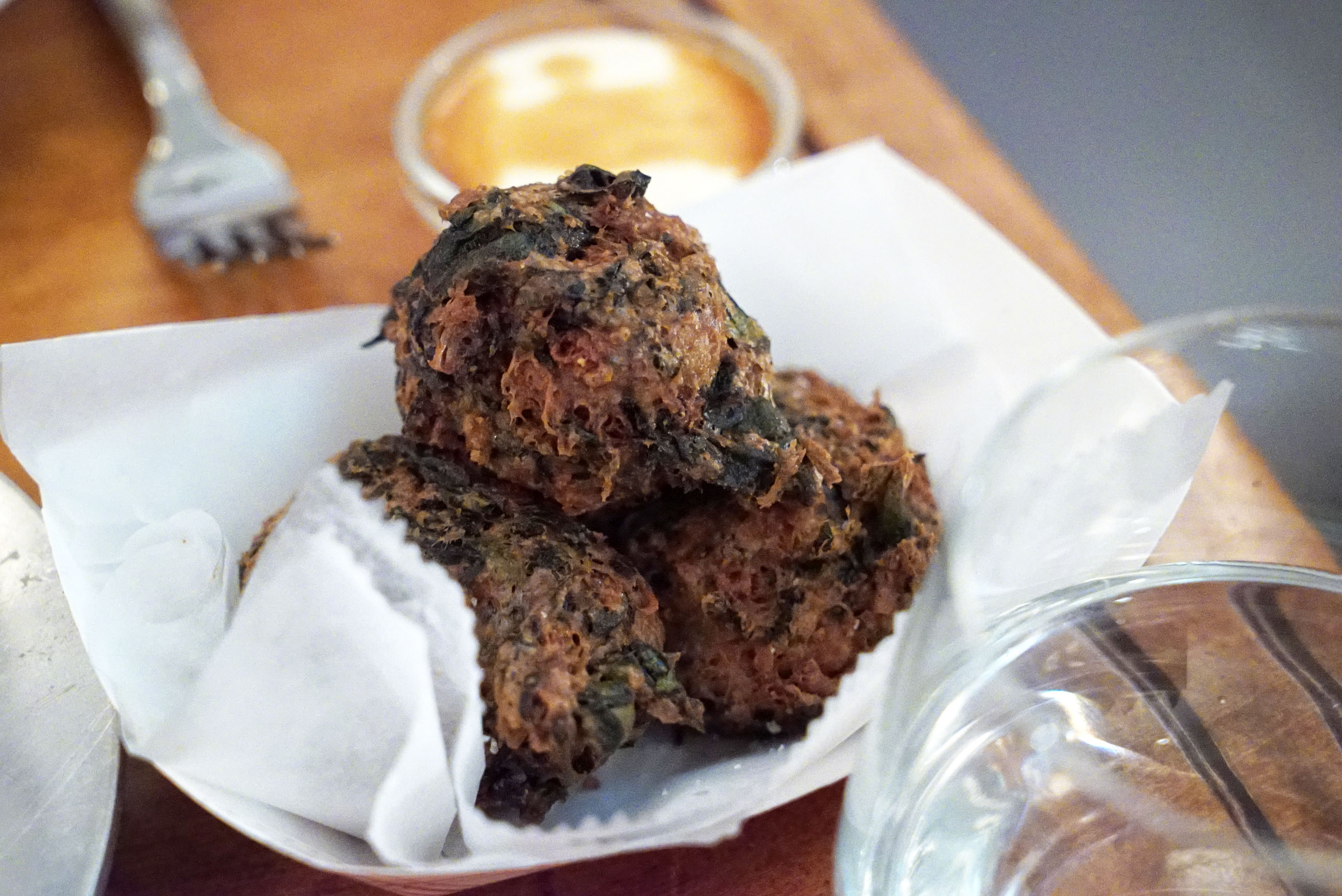 A bit more dense and moist than your average hush puppy, the spinach inside added a juicy element to each bite.