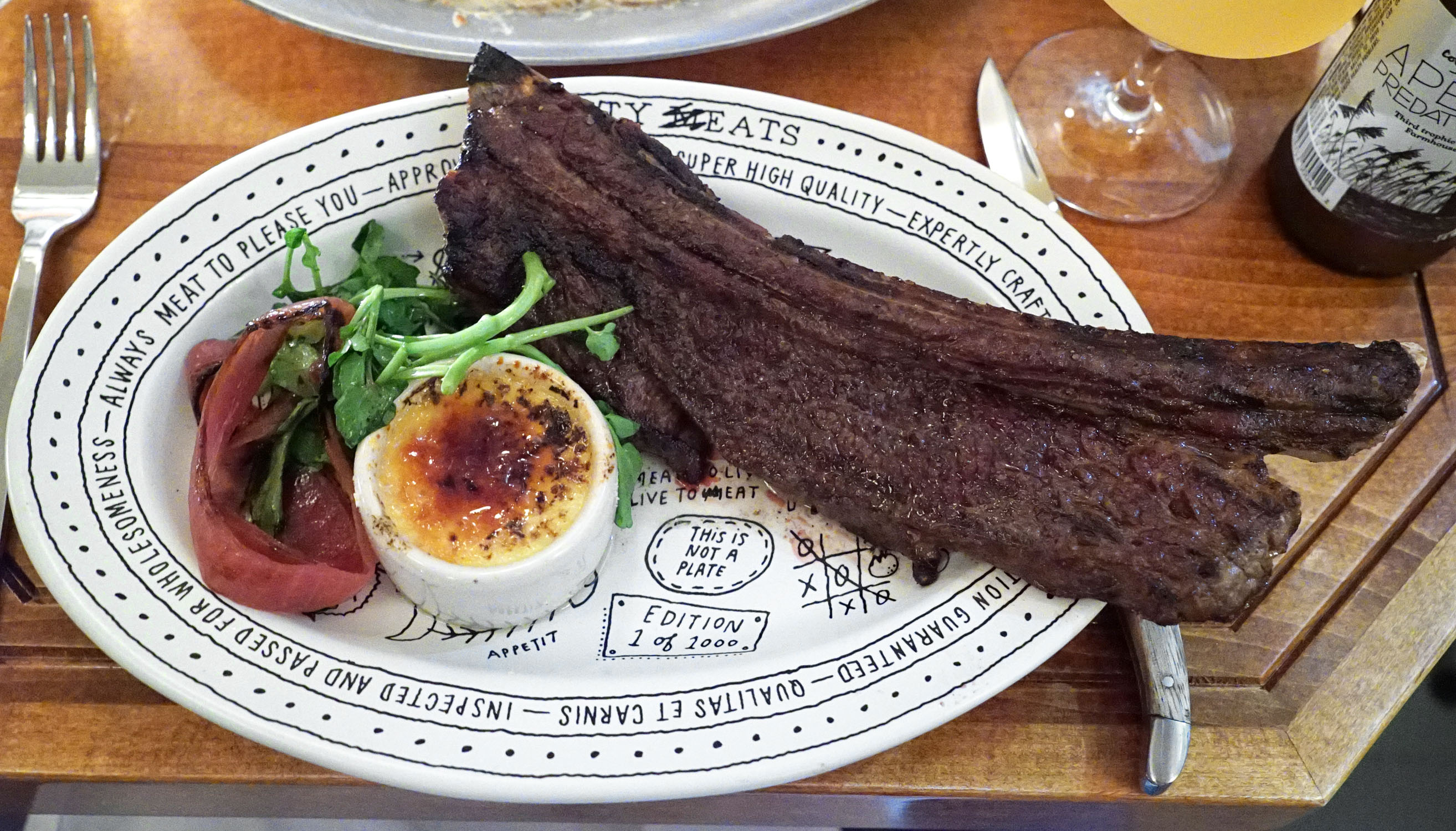 They only allow you to order this cut “pink or grey.” Due to the high marbling and location along the bone, this meat can get chewy if not correctly cooked to either of those temperatures. Clearly I went with pink, and I was a very happy camper. These guys are masters in the kitchen.