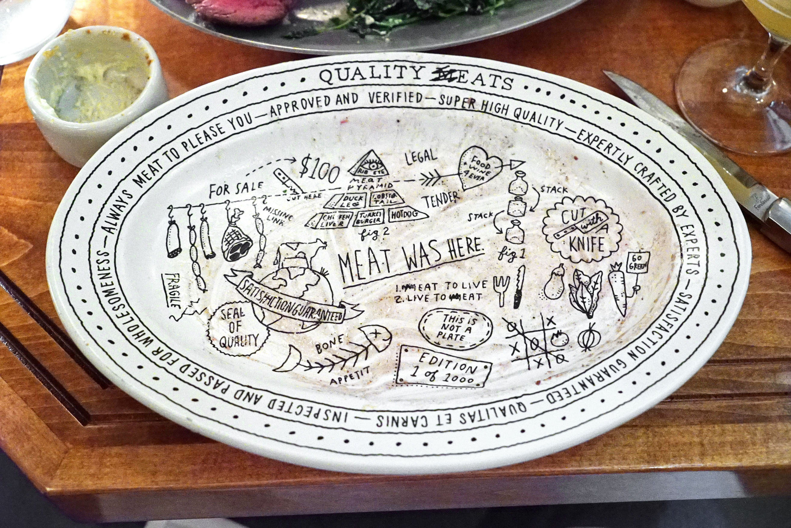Portions are naturally a bit smaller for some of the less common cuts of beef, but the plating is really fun. They’ve got these line drawings all over the plates that match the decor of the restaurant.