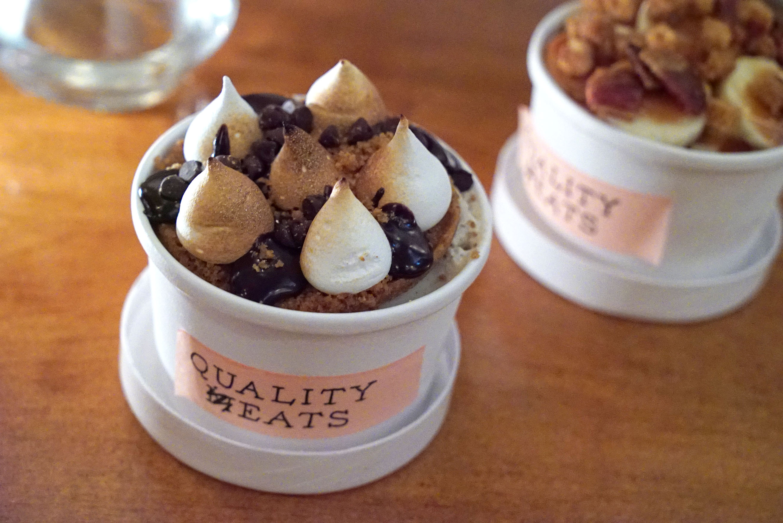 The dessert menu offered an array of interesting selections. We went with two ice cream items. First is my burnt marshmallow ice cream s’mores, with graham cracker shortbread, toasted marshmallows and a fudge swirl. Awesome. I declare that burnt marshmallow flavored ice cream needs to be in every grocery store, ASAP. Each bite tasted like a campfire or post-grilling snack.