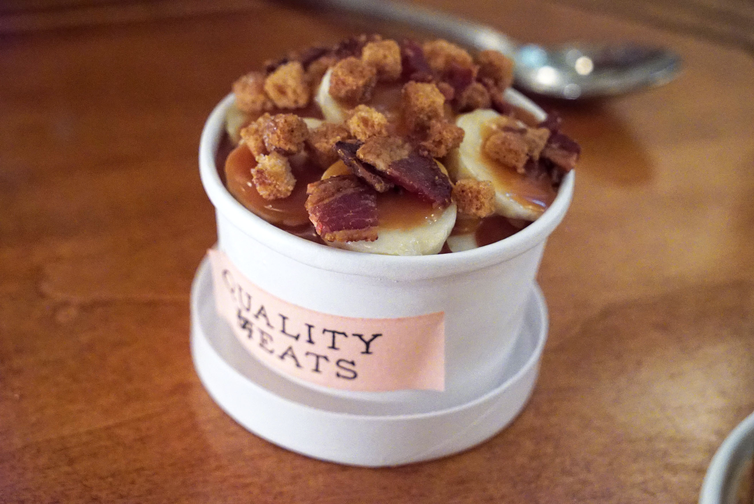 My wife had an item called “This Shit is Bananas.” It’s roasted banana flavored ice cream with peanut butter caramel, candied bacon and cinnamon toast. ELVIS HAS ENTERED THE BUILDING!