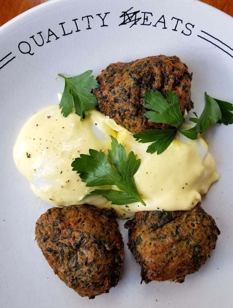 We also tried the creamed spinach hush puppies. These were pretty interesting:
