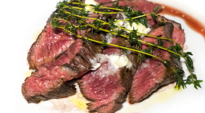 Dedicating less time to aging this cut is smart, since the hanger itself isn’t very big to begin with; any longer and you may risk having to trim off too much bark. Also, with a cut like hanger, which is normally pretty well-marbled to begin with, you are really doubling down on the intensification of flavor that you get from the dry aging process. The result for this cut is amazing. It’s one of the best hanger steaks I’ve had. It was super tender and juicy, and perfectly cooked. The beef flavor really stands out here as well, since it was wisely prepared in a more simple manner, with shallot butter and thyme. After all, they don’t call this cut the “butcher’s steak” without good reason!