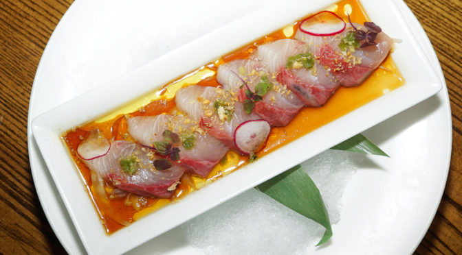 We tried a whole bunch, but the standouts for me were the “Emma Stone’s a Ginger” (bourbon, peach, Lapsang Souchong tea, molasses, ginger beer, cookie “snack back”), “Say a Dirty Word” (barrel aged gin, vodka, house dirty brine, white pepper, chili oil, Boursin cheese stuffed olives), and “Paul Bunyan’s Flask” (rye, pine infused maple, Oloroso sherry, Bergamot bitters, apple wood smoke) cocktails. In fact, that’s the order in which I would recommend drinking them, the Emma to start the meal, the Dirty with your main course, and the Flask – which is a treat to see being served – with dessert.
