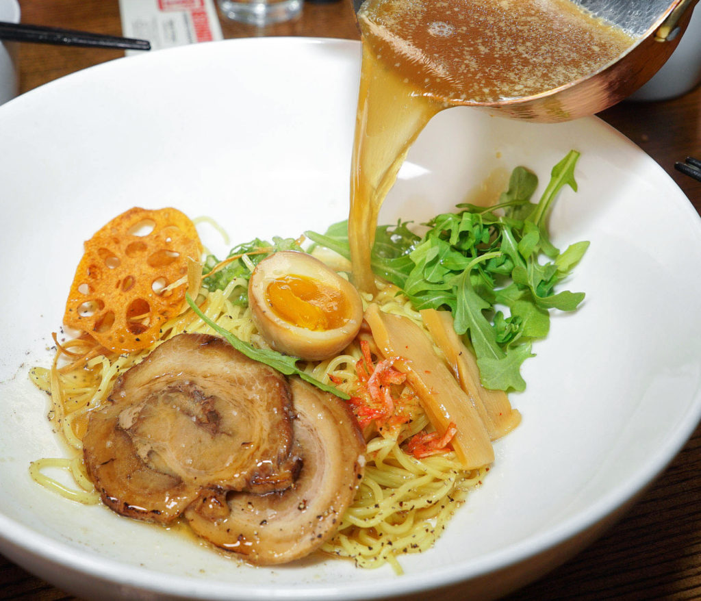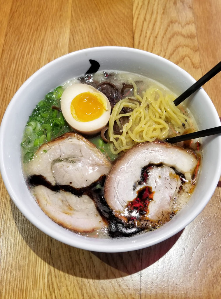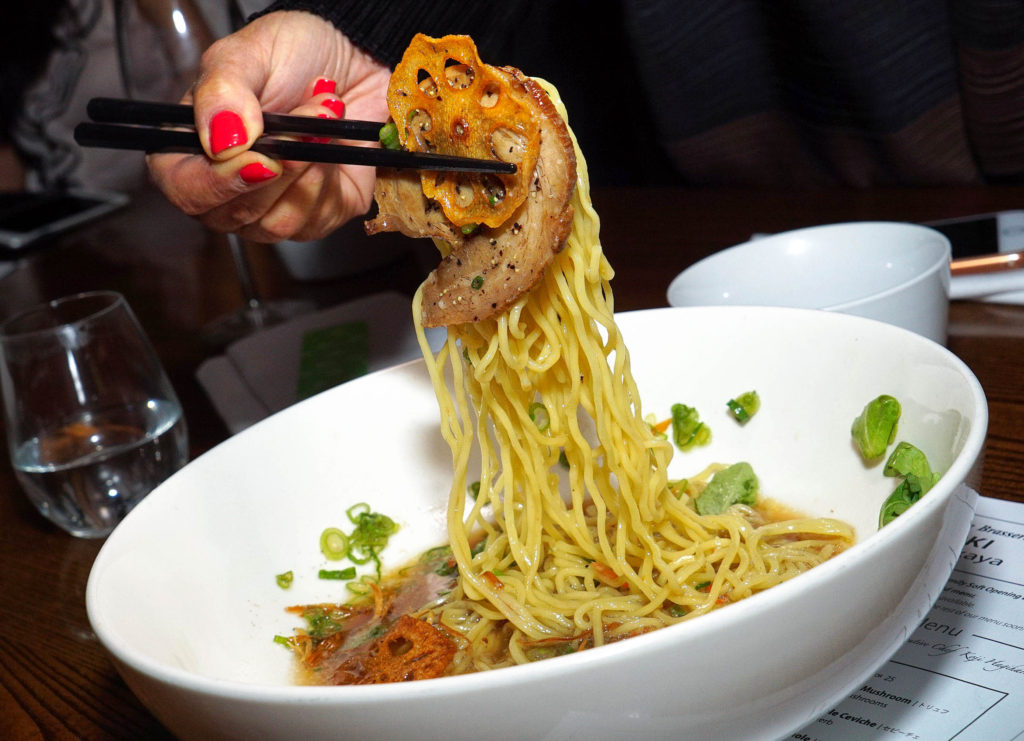 Not a Ramen: This is an American fusion version of ramen. The broth is a beef bone consomme, and it’s served with a soft duck egg, a hunk of tender short rib, marrow and egg noodles. Obscenely good.