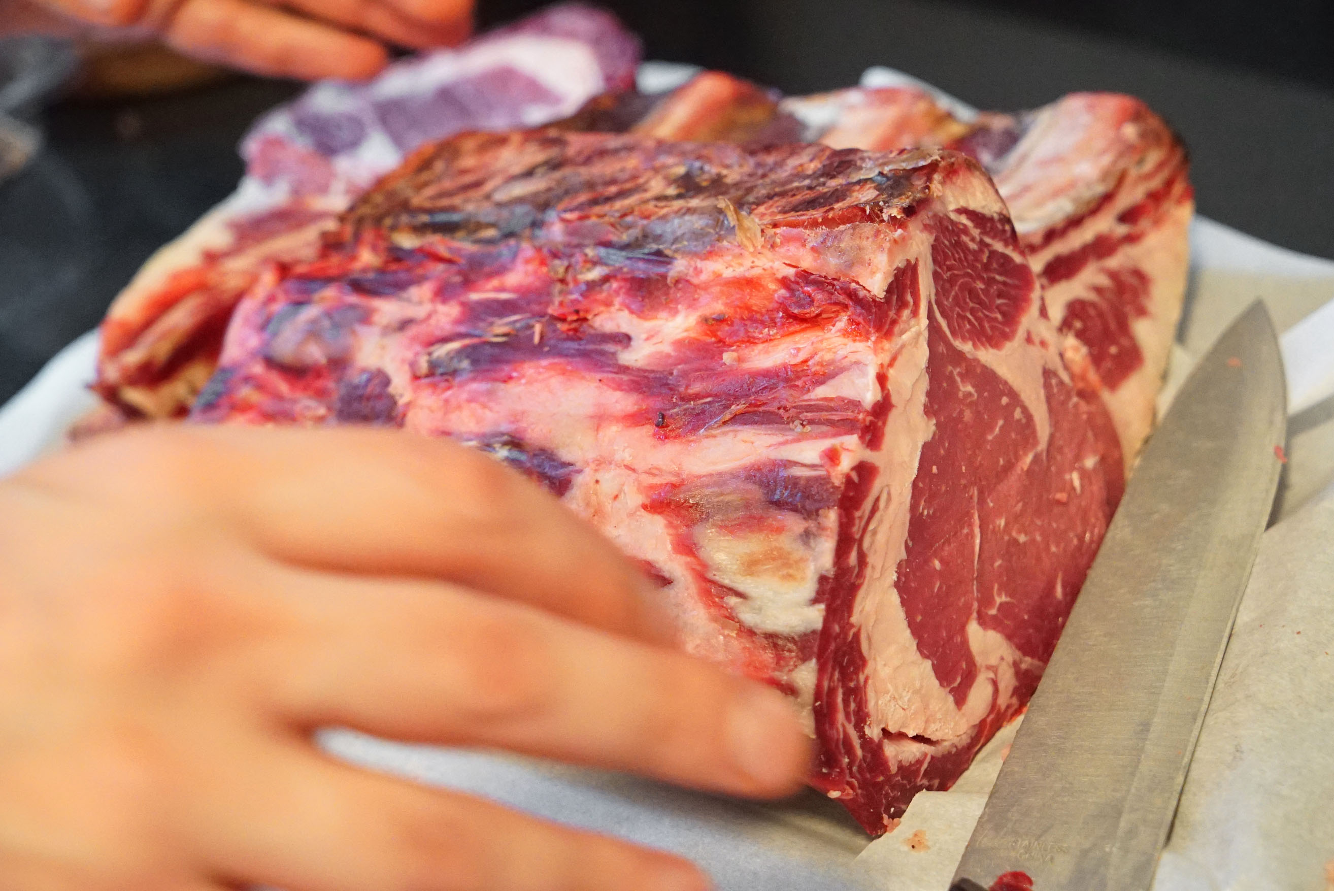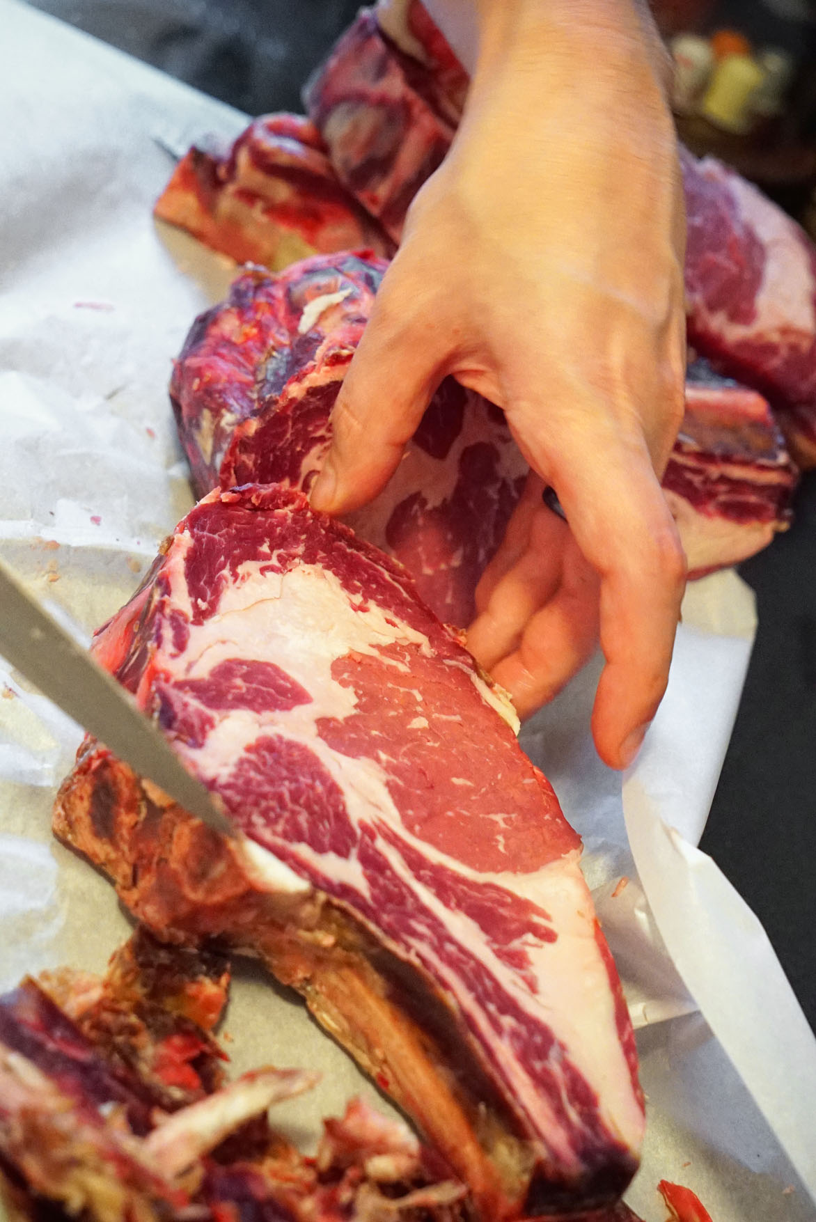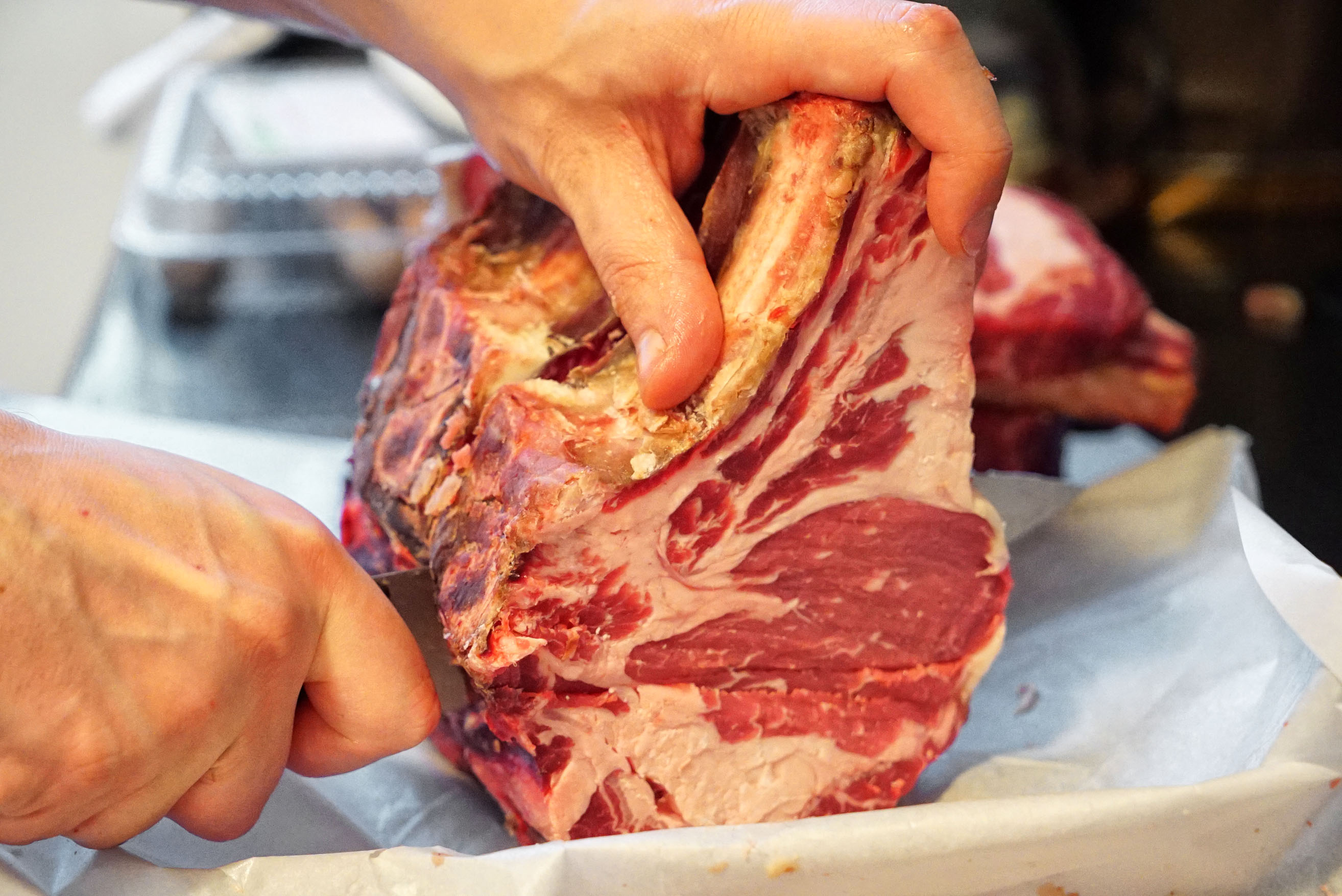 I came here with a group of friends to tackle their dry-aged six-bone standing prime rib roast. Watch this: