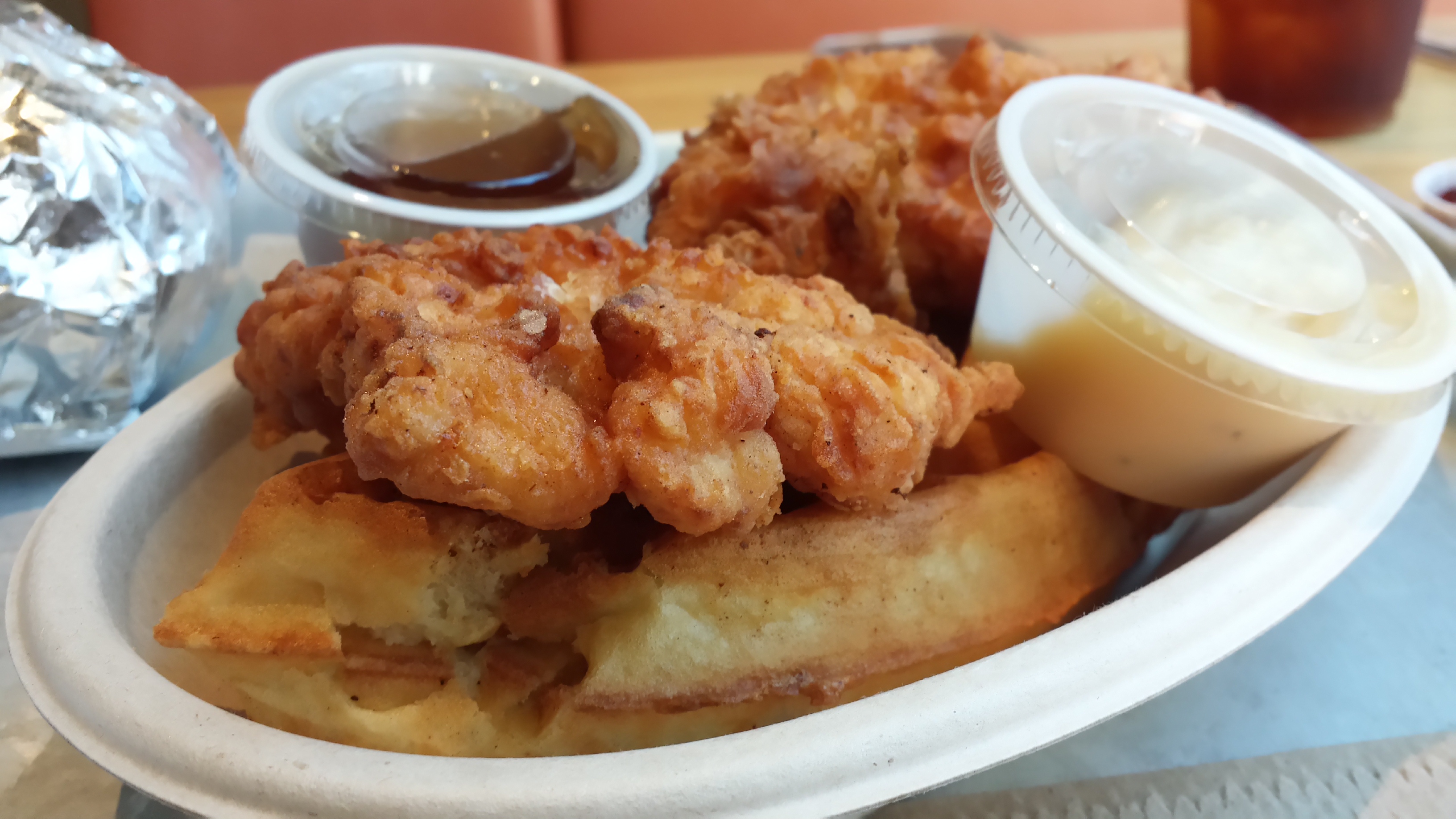 My wife had the chicken & waffles, which were perfectly executed, and came with a really kick-ass maple butter to slather on top.