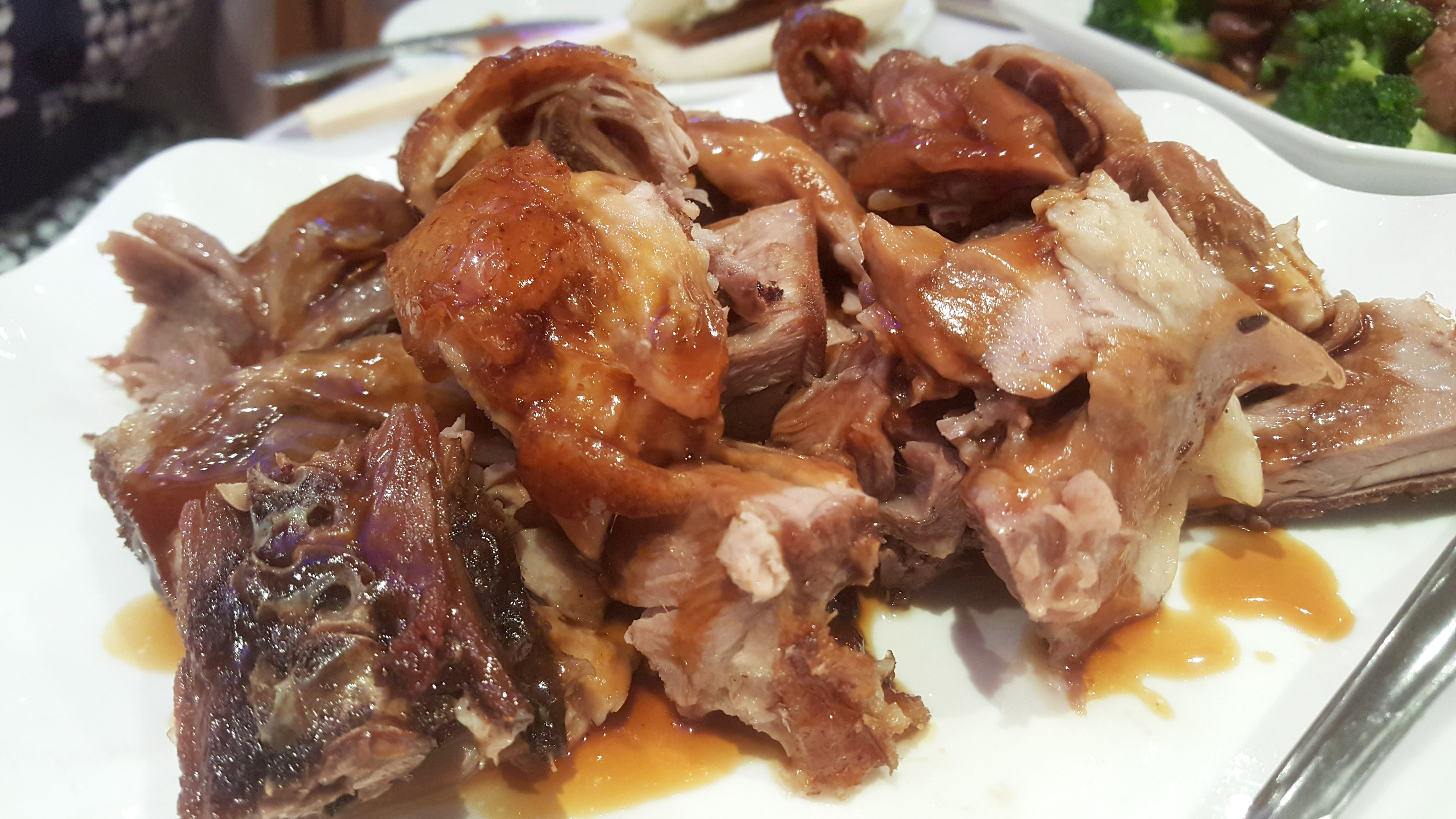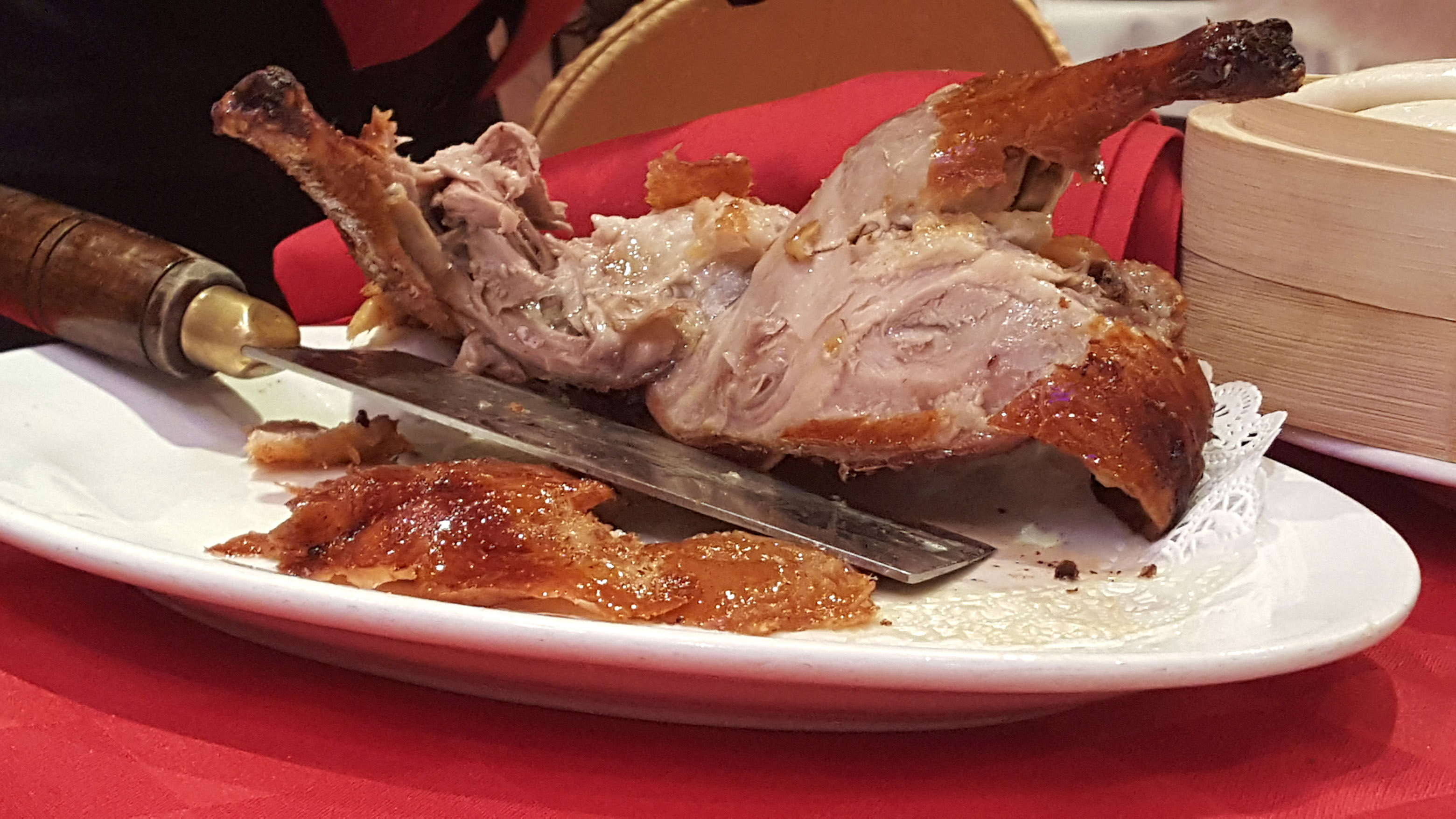 - Slice the major muscles off the bone, slice the muscle against the bias, and arrange the meat on a platter for serving.