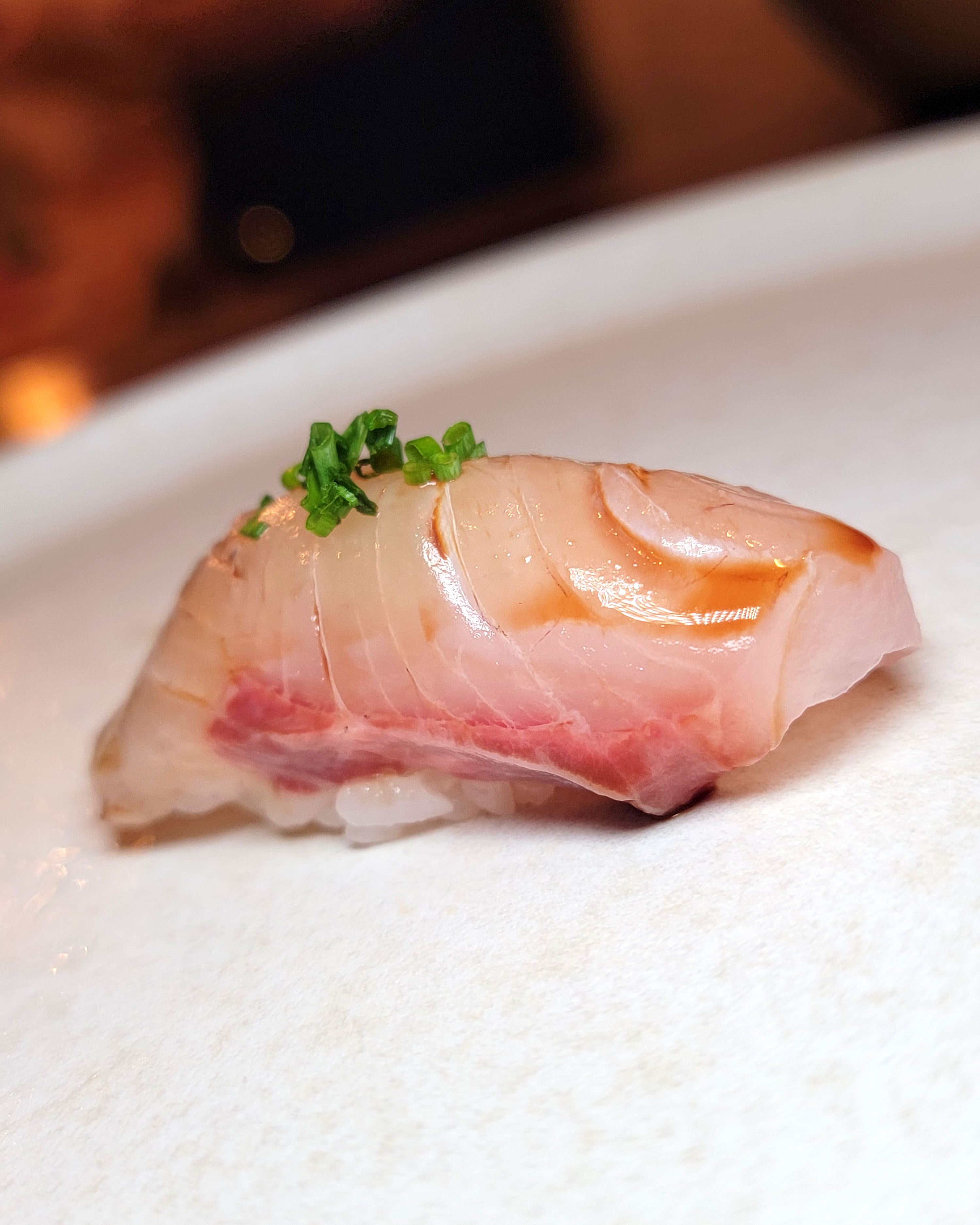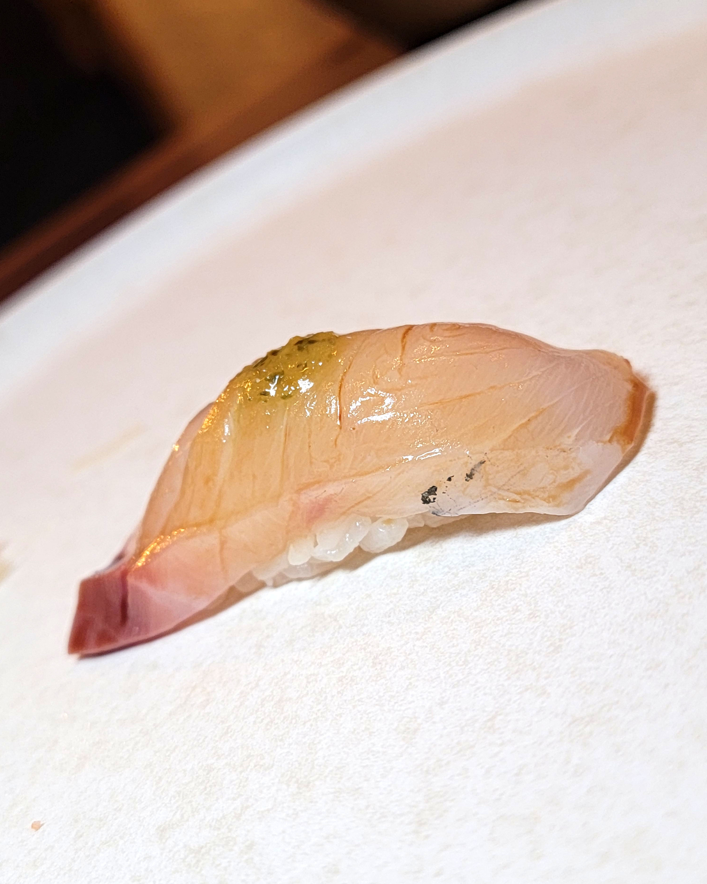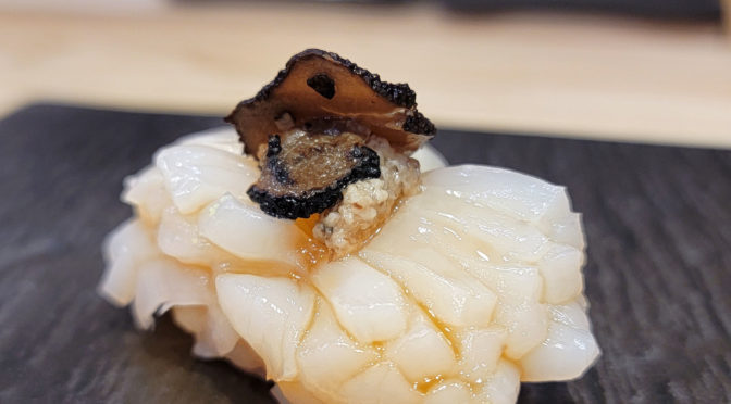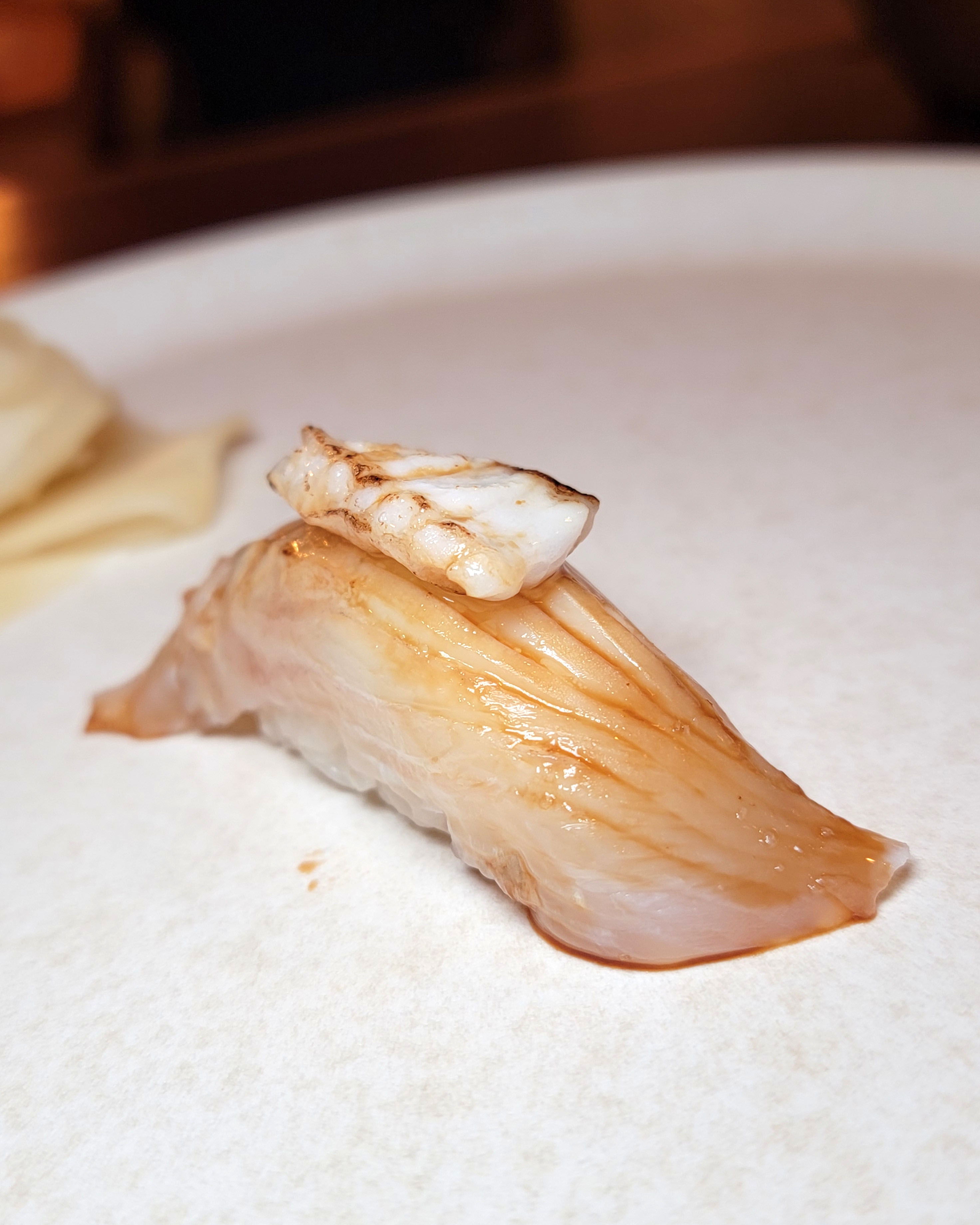 Here is the carrot puree with dashi gelee and summer truffle. At first I thought it was some kind of uni puree based on the color and bright, brine flavor. This was one of the most delicious items of the night. I think I sucked down three of these mutherfuckers.