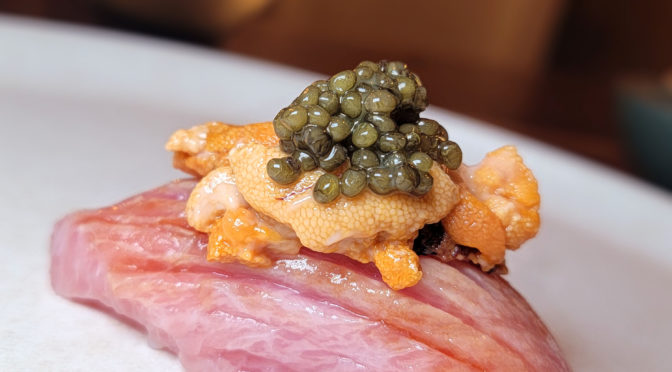 Now for the trout and caviar sushi. I only had one of these, but that doesn’t mean I didn’t like it. It was delicate, but full of great flavor. Very clean, crisp and refreshing.