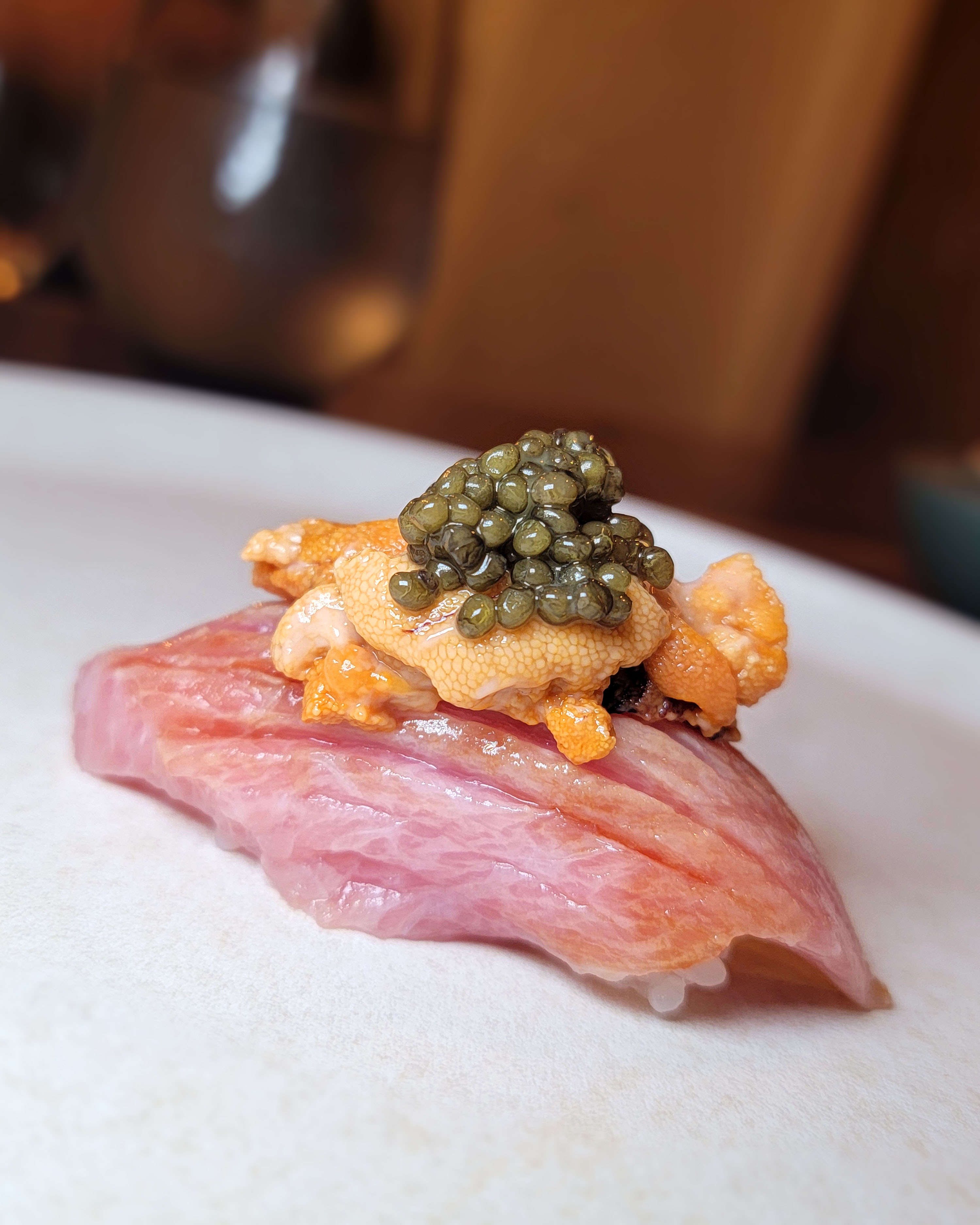 Next is the meat: filet mignon tartare with uni, wasabi mascarpone, and poached egg. I had three of these too. Hands down one of the better tartares I’ve ever had. It was earthy, it had great texture, and the poached egg introduced just the right amount of fat back into the dish.