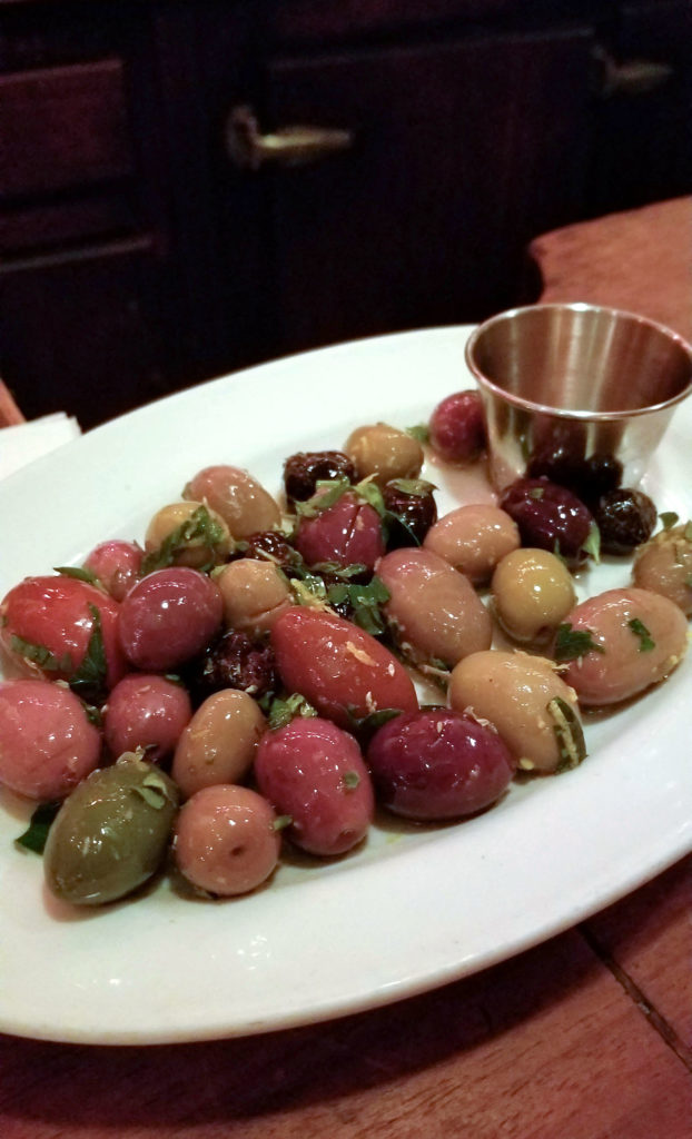We snacked on some homemade focaccia bread before our entrees came out. This was spiced with the same stuff from the bloody mary rims, along with some toasted and minced rosemary. Really delicious! And its served warm, with a bowl of olives.