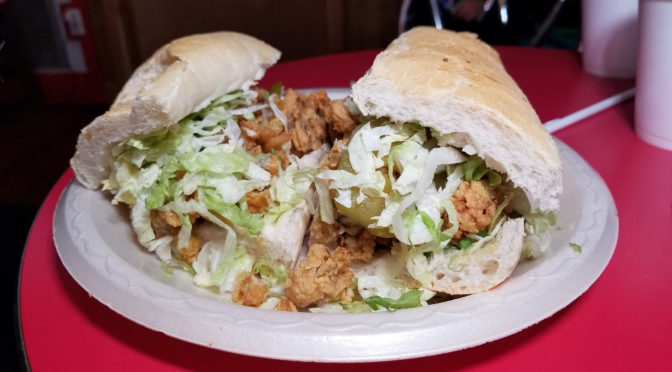 This’ll be a quick bang out review, since three of us split an oyster po-boy here just to make sure we got some of the local cuisine into our guts.