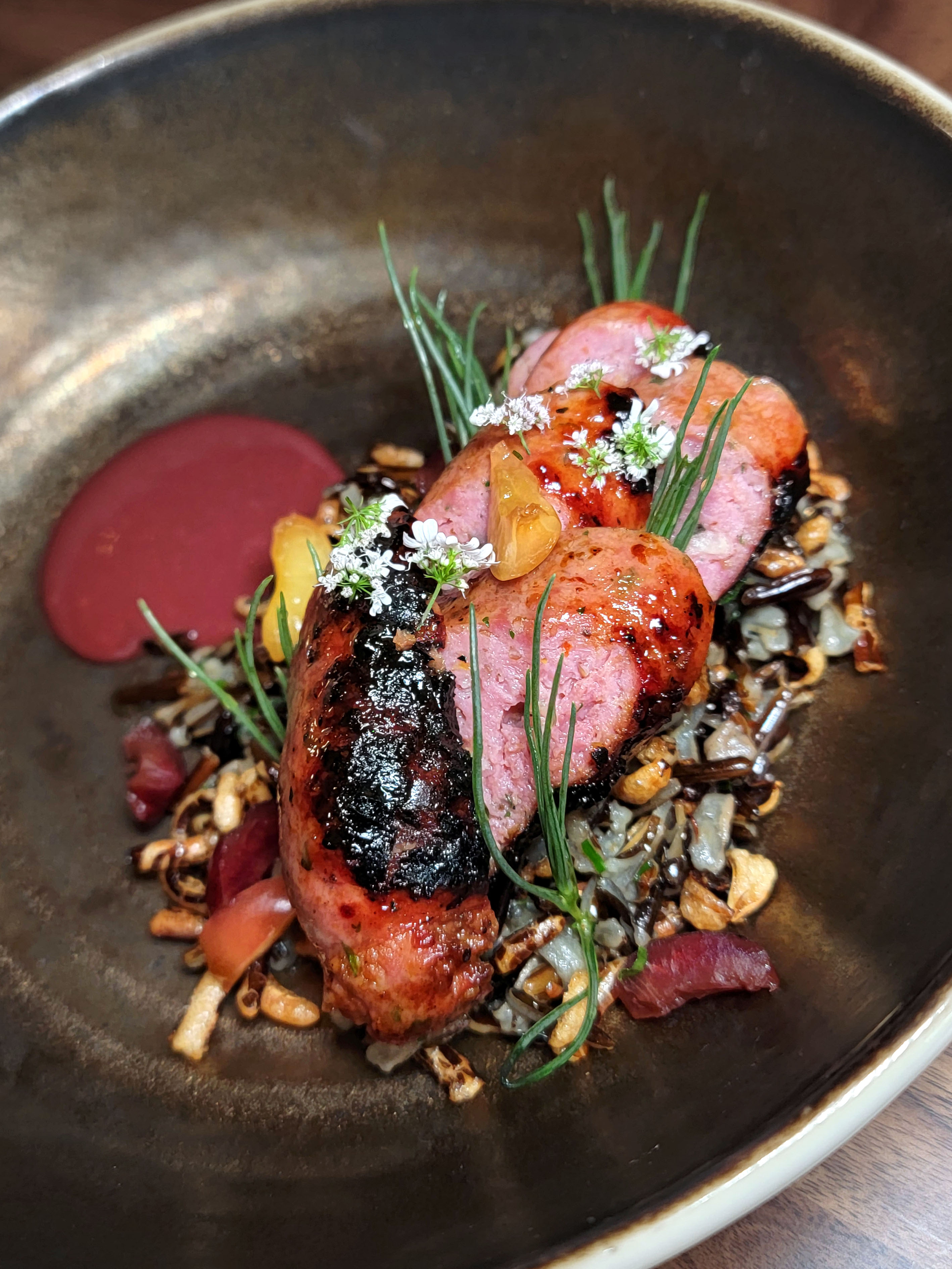 We started with the sourdough bread and lard, the duck mortadella, and a duck sausage that was on special for the night.