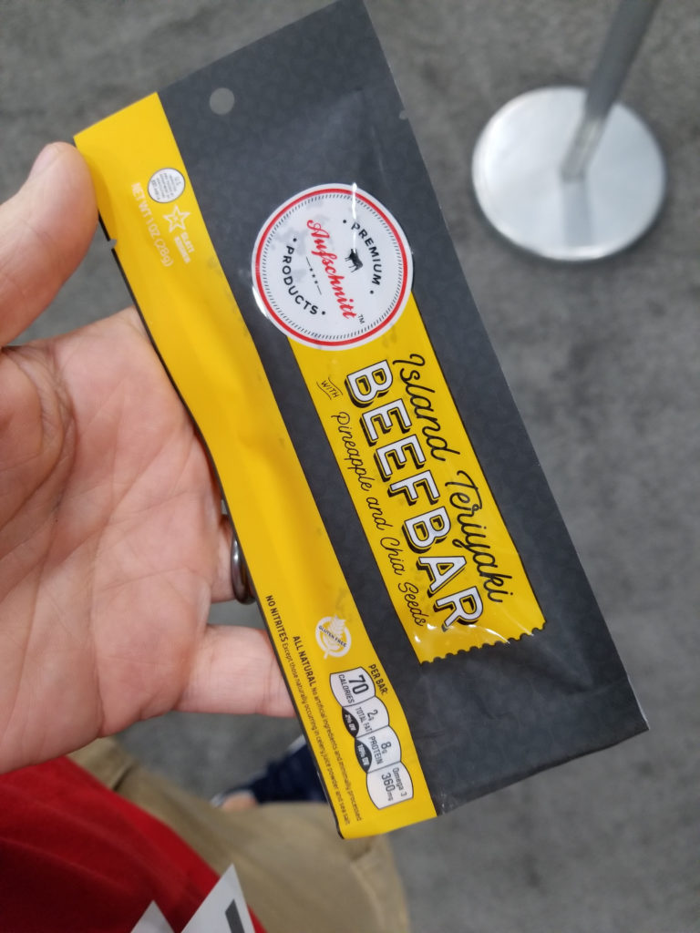 I first tried the uncured bacon and pork bar. It was similar to a spam type thing. It had a smoked pork flavor, but it was a bit salty and I wasn’t overwhelmed with joy.