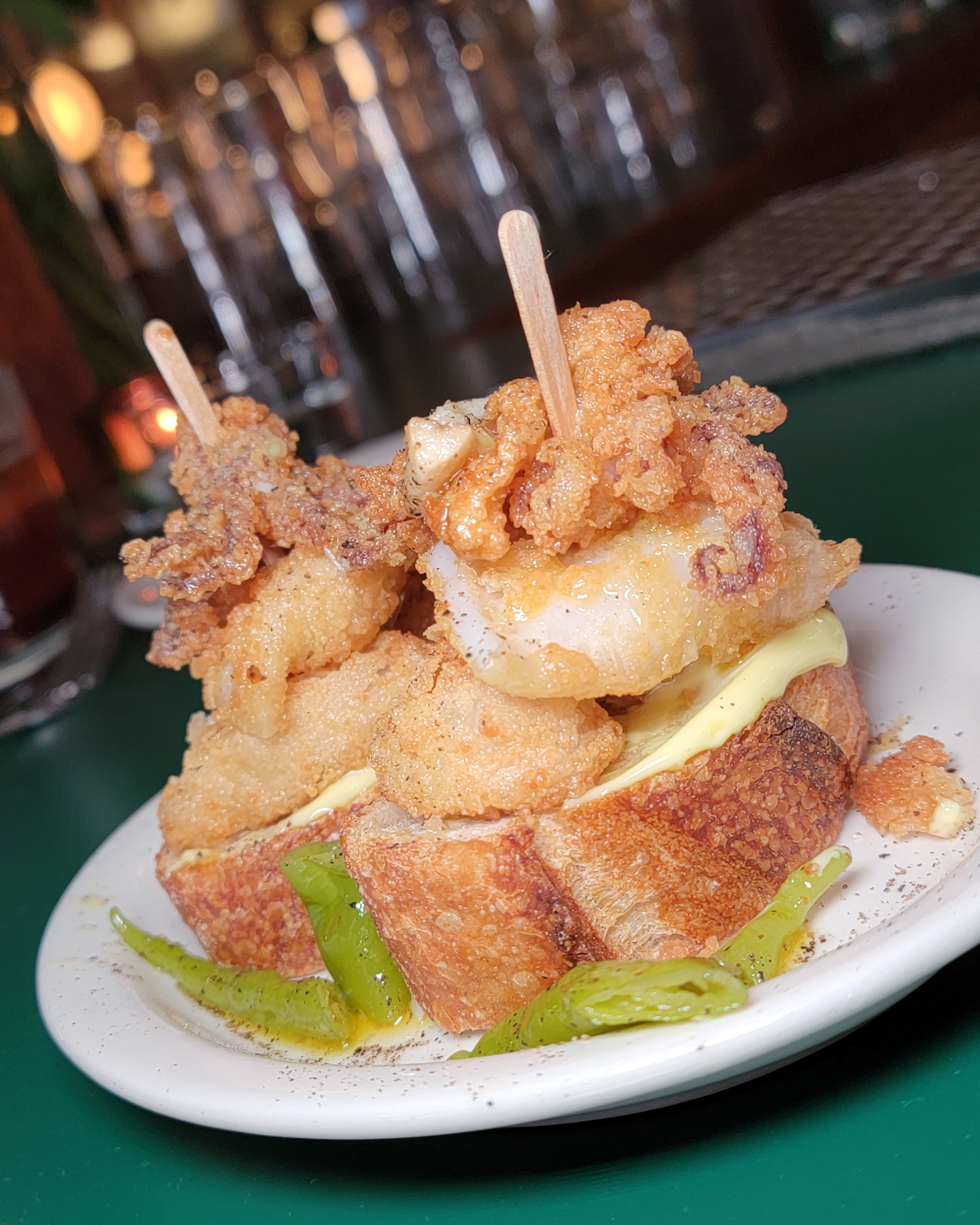 These were awesome. I would get them again and again. I only wish there was more on the plate! Perfectly fried and dressed, and really nice toasty bread underneath. I was transported back to San Sebastian.