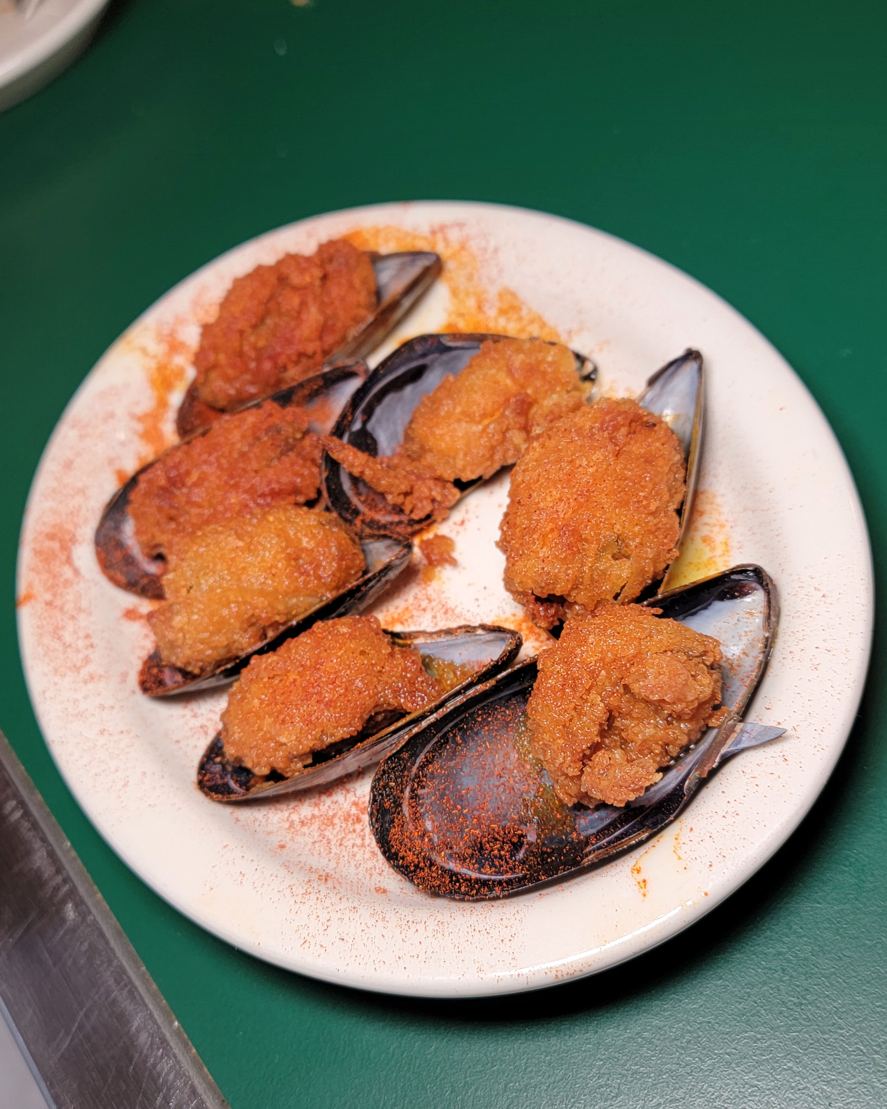 I would pass on these. They tasted like canned or tinned mussels that were breaded and fried. A bit too potent. I’m curious if they might be better on another night. Perhaps just a funky batch?