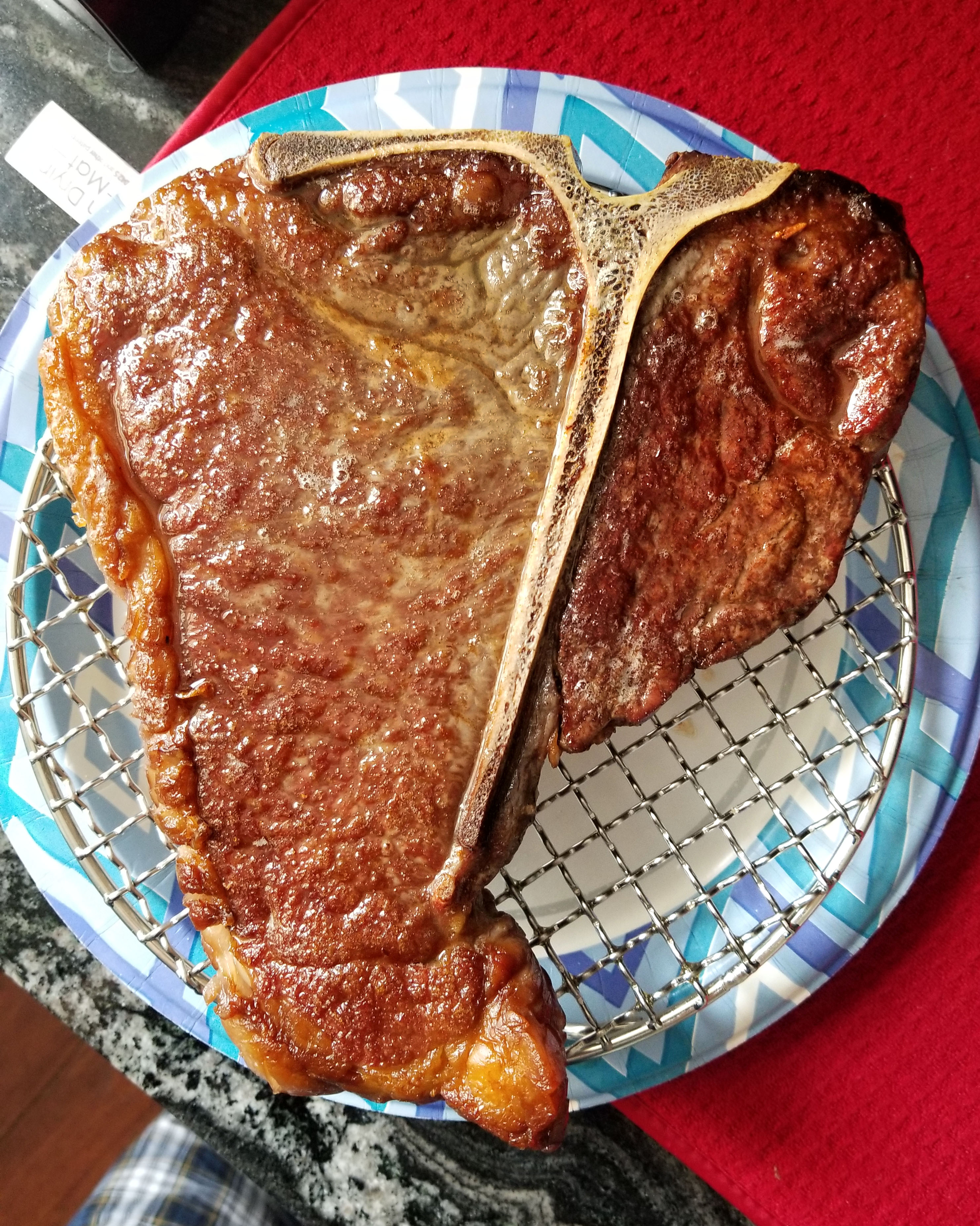 Then I tried a “dry-brine” on a highly marbled porterhouse. Here’s a pic before brining.