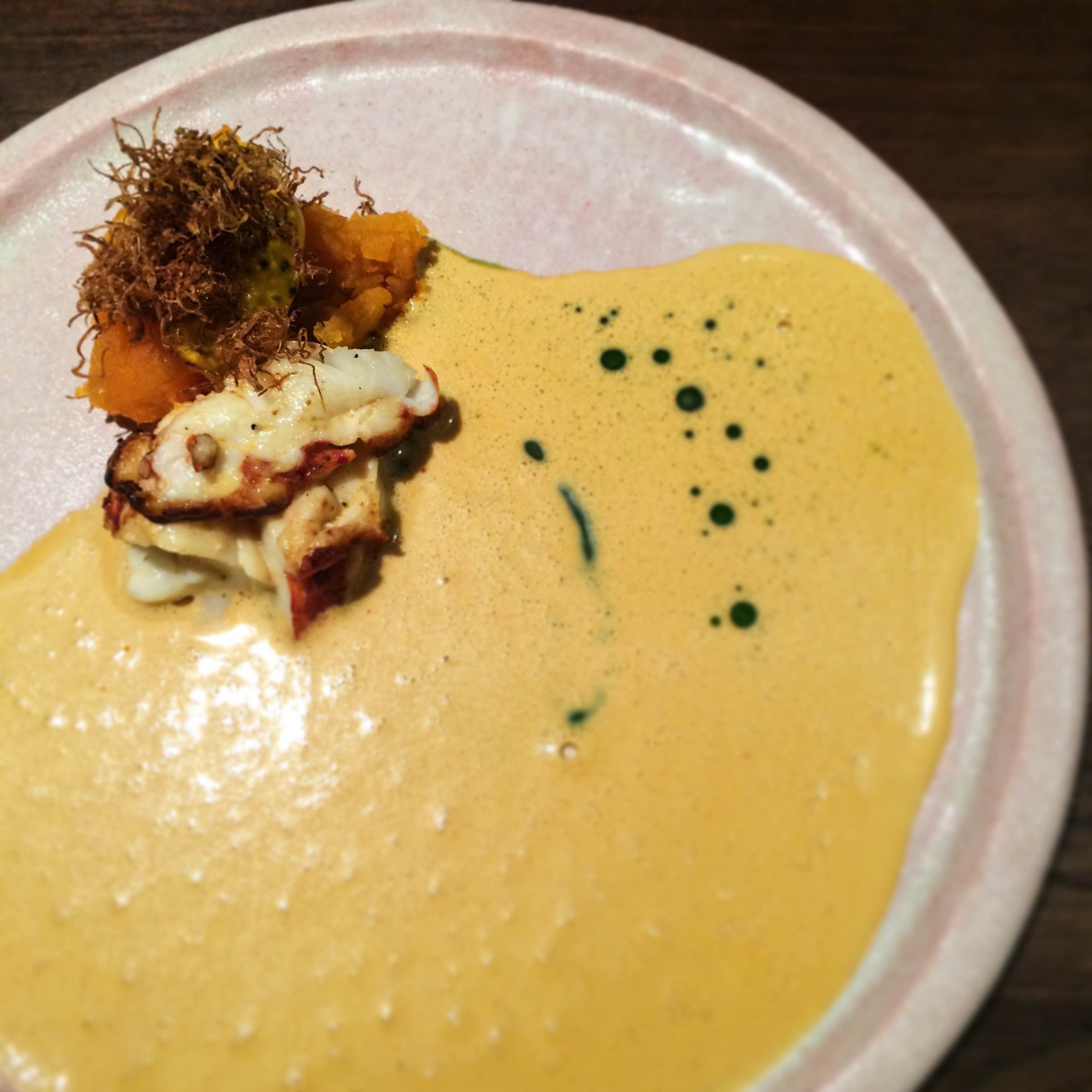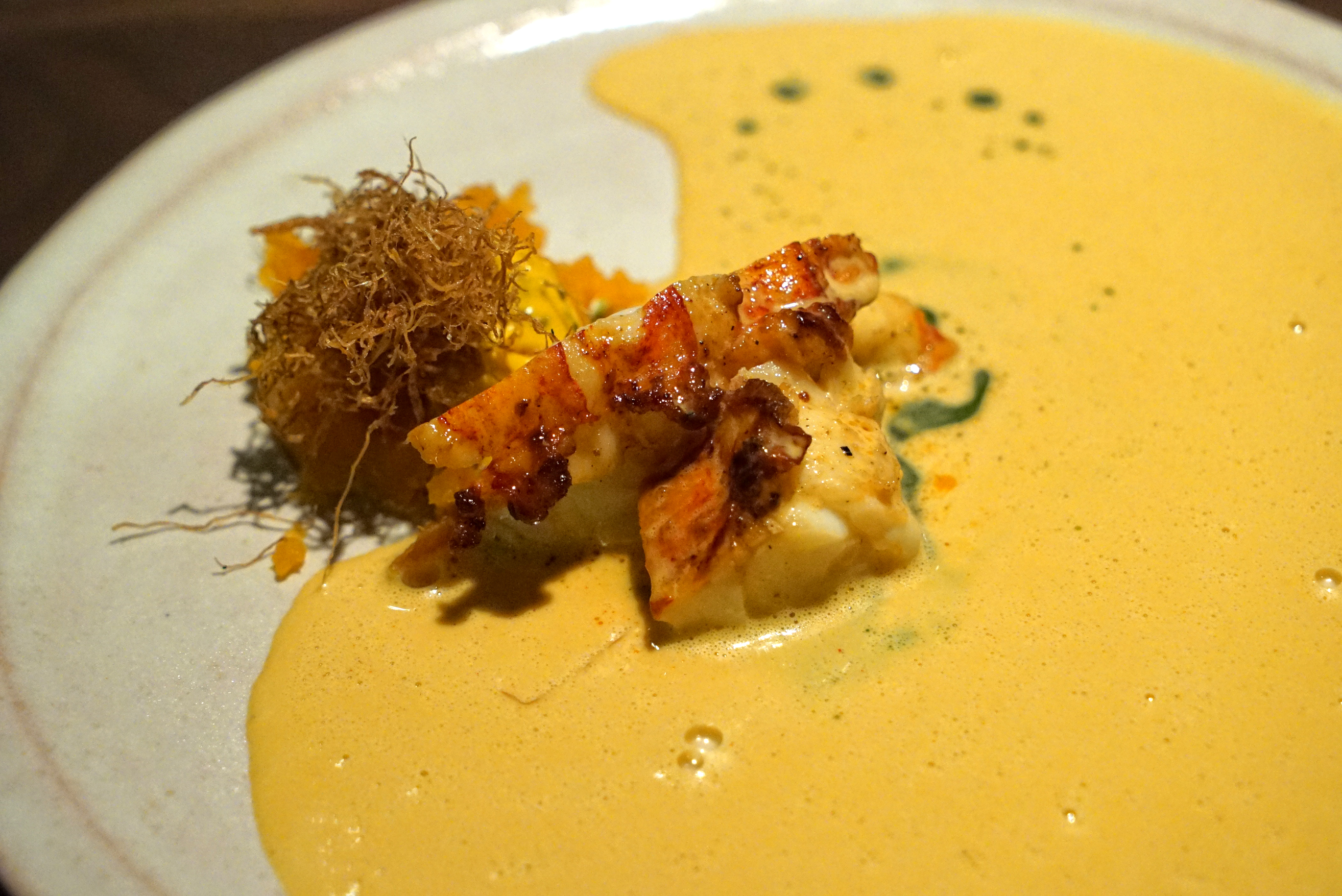 The first of the six courses was their egg on egg on egg. Custard, yolk and caviar with a toasted brioche stick. Really delicious and easily a top dish for the year.