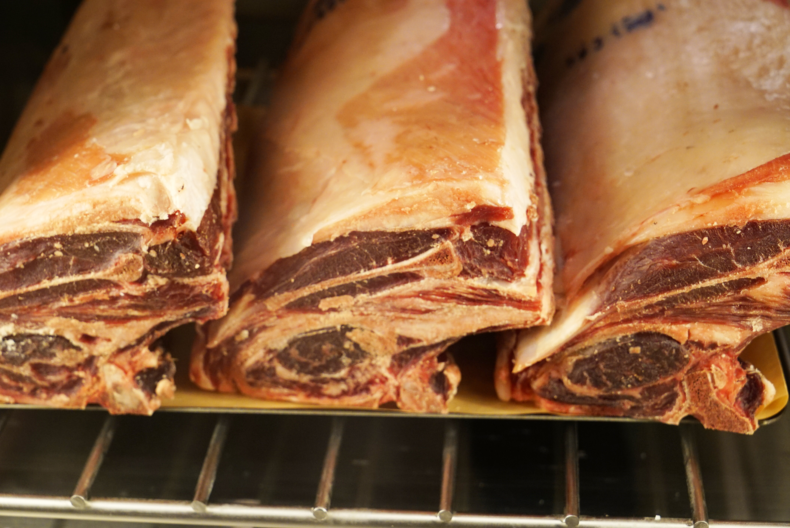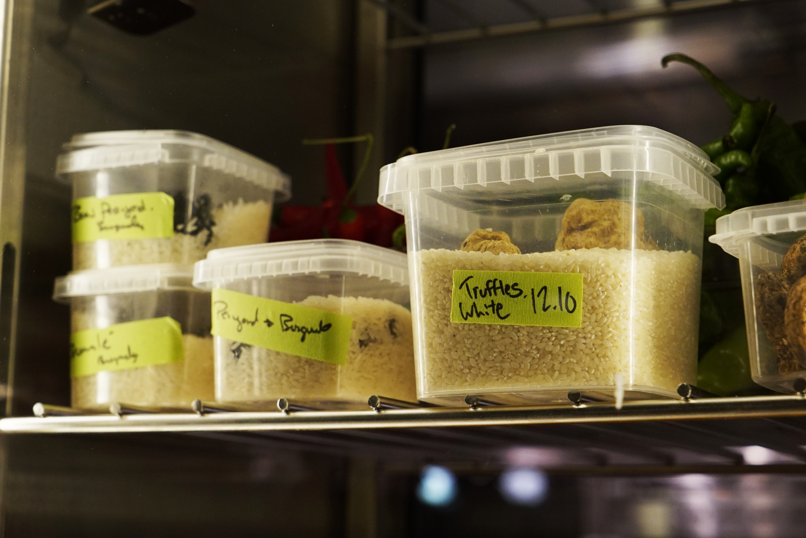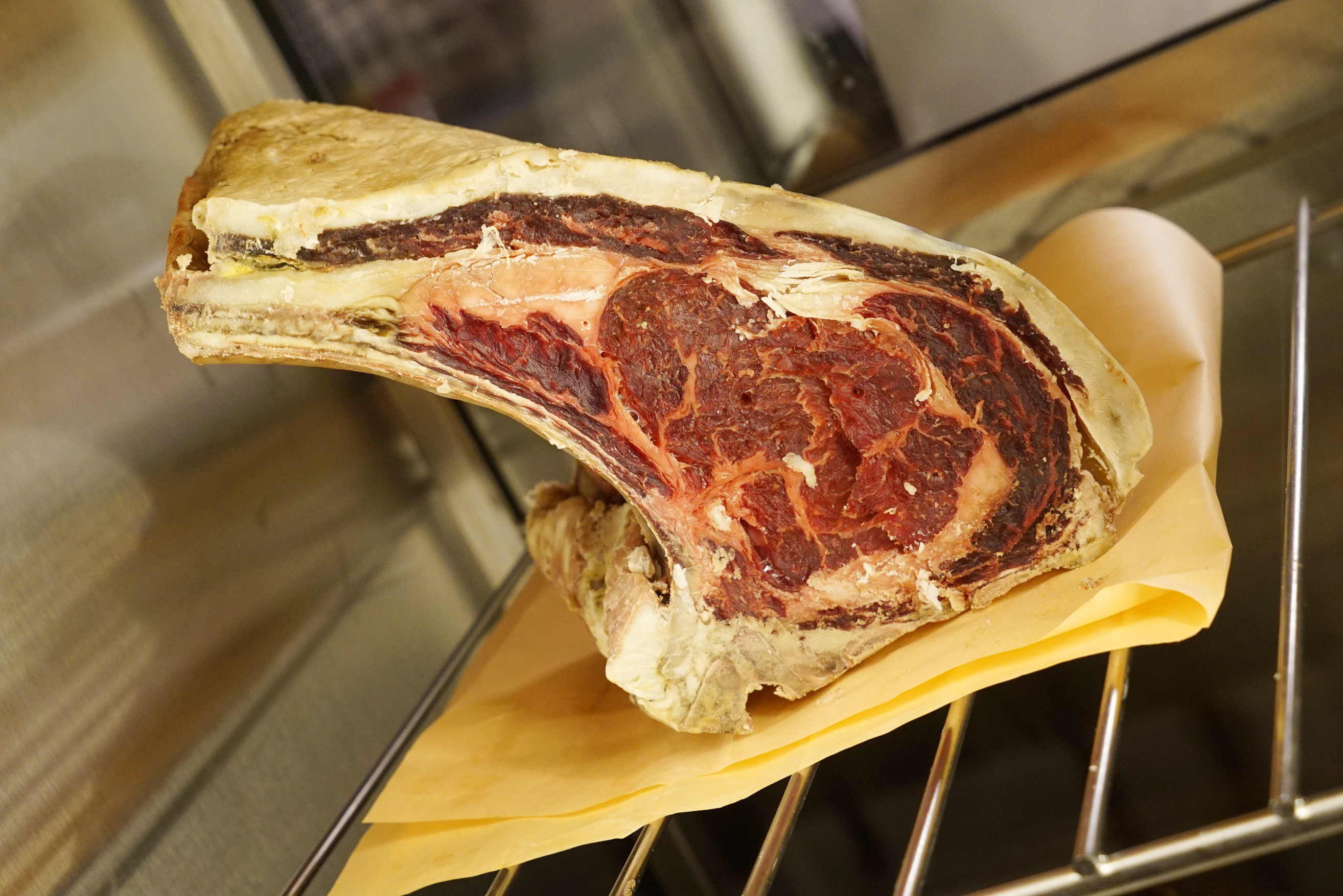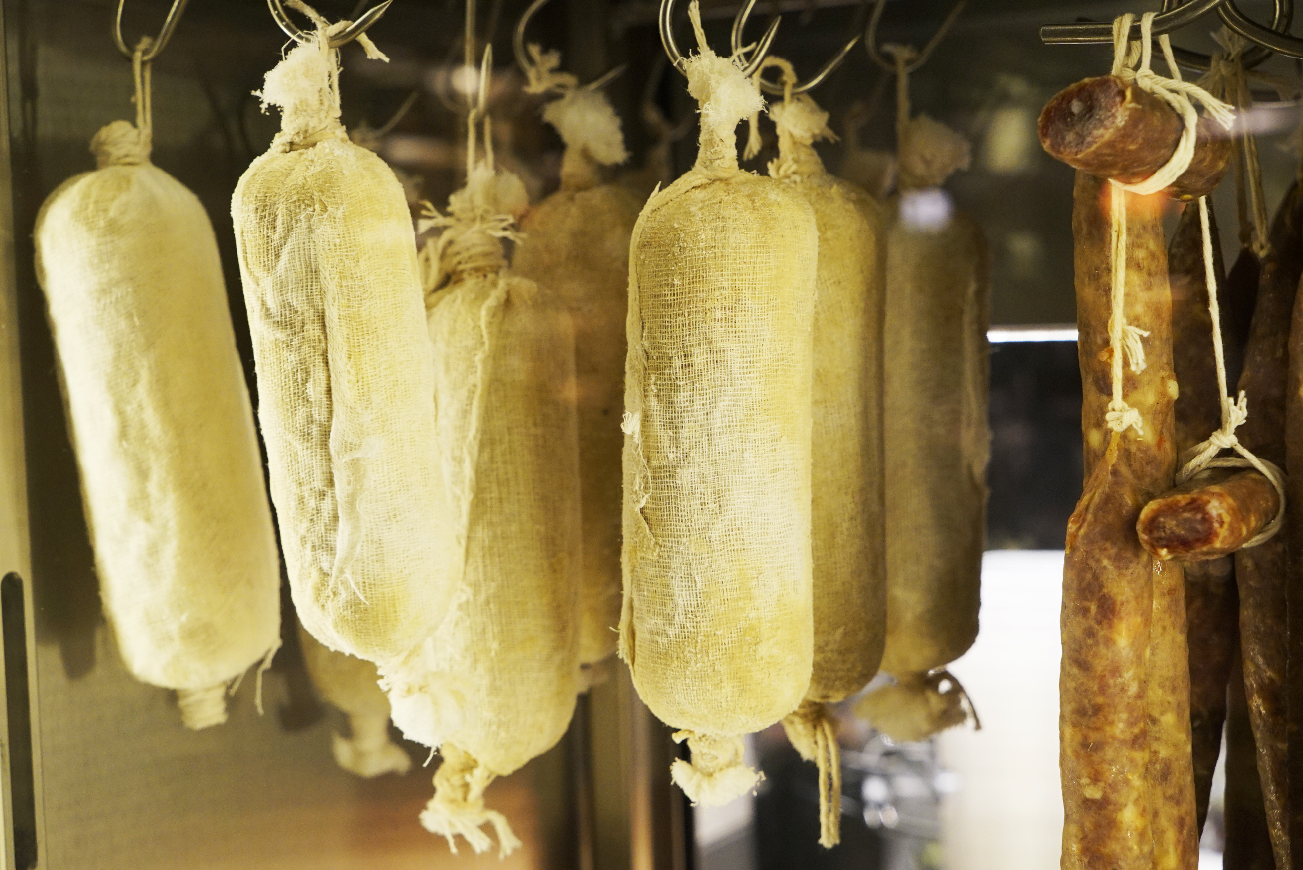 It was so cool though – floor to ceiling fridges make up one whole wall in the back, and you can actually see what you’re eating and how it is stored. Here are some of the awesome things I found in the fridges: truffles, aging tuna, cheese cloth wrapped foie gras, aging venison loin (unless that is some sort of sausage) and a variety of aging beef.