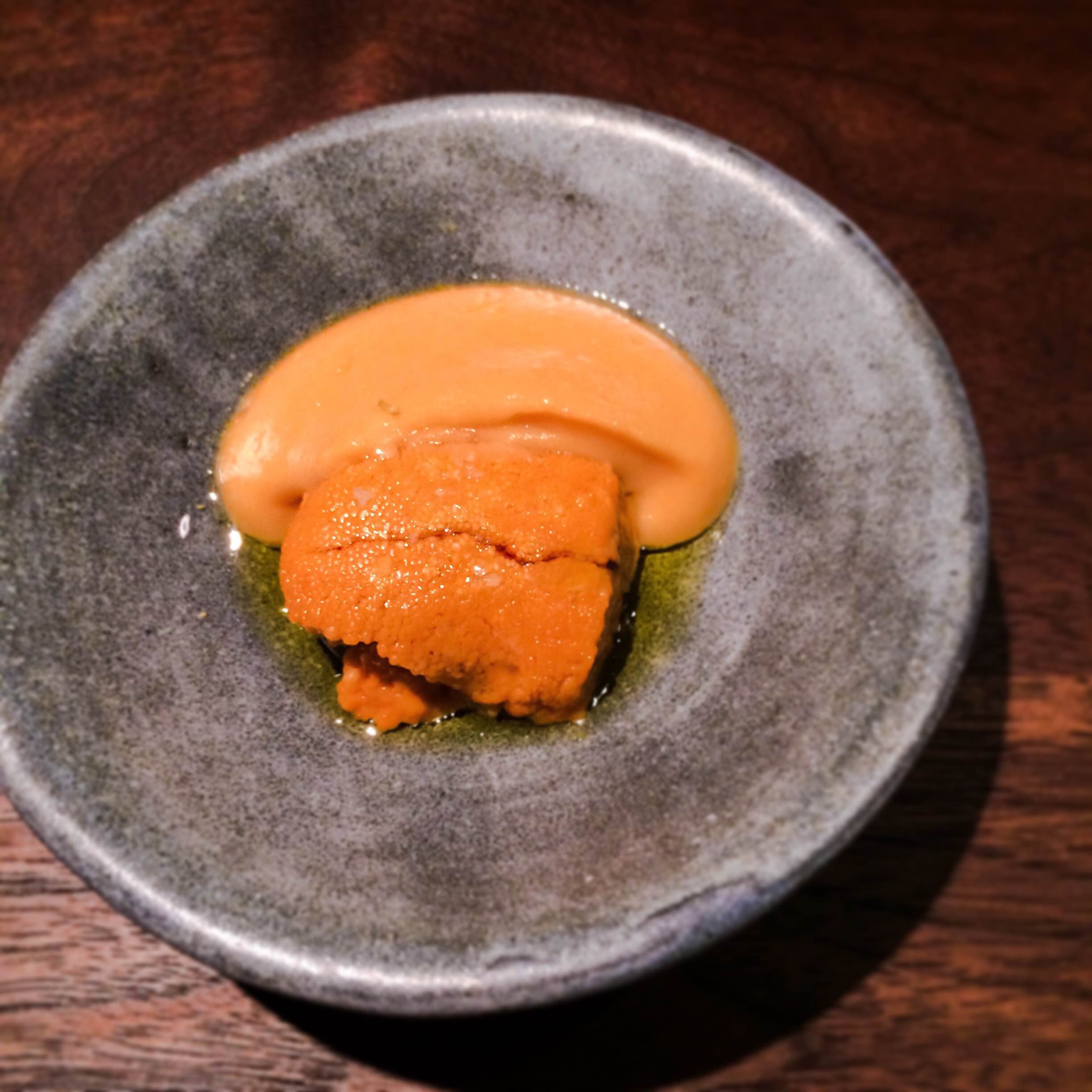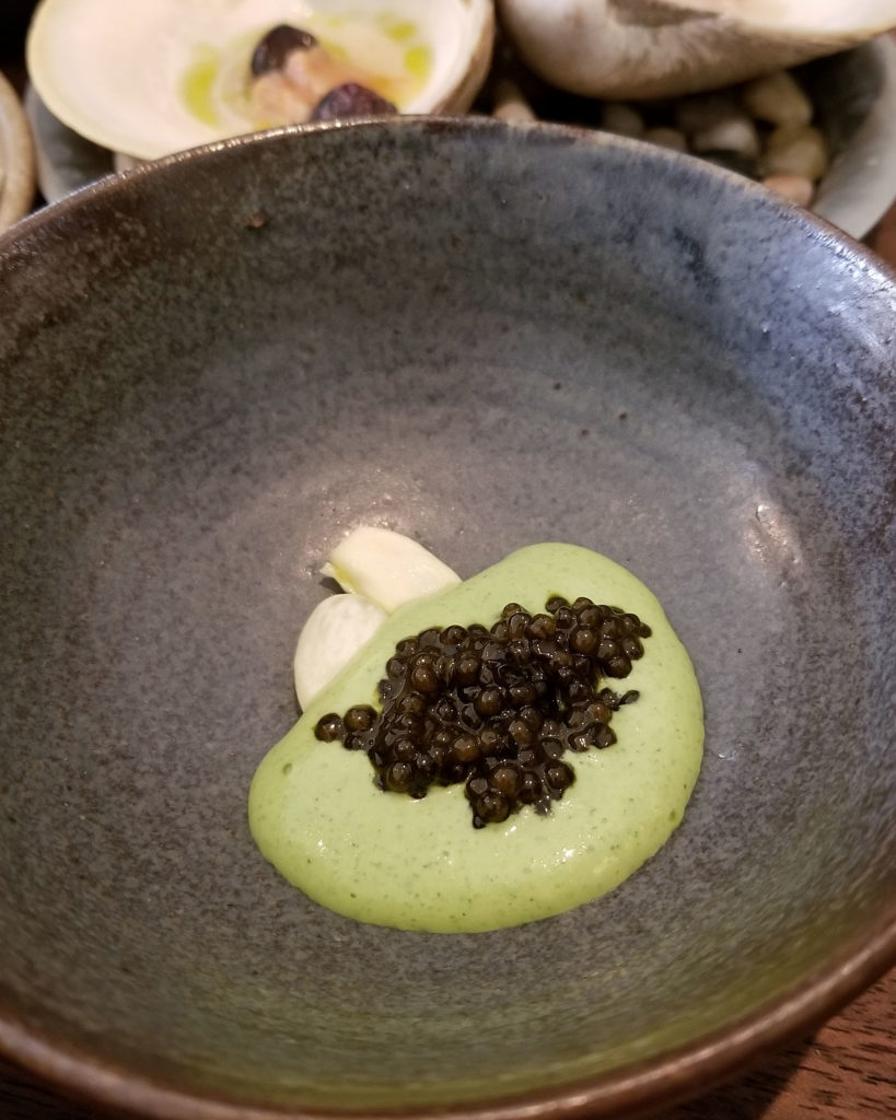 The following is the absolute best preparation of uni (sea urchin) I’ve ever had the pleasure of eating. Prior to this, I wasn’t exactly the biggest fan of uni. I’ve had some great preparations (like at Takashi), but nothing ever really blew me away to the point where I would go out of my way to have it. This was amazing though. It was raw, and served with a fermented chic pea puree and topped with lemon olive oil. So fucking creamy!