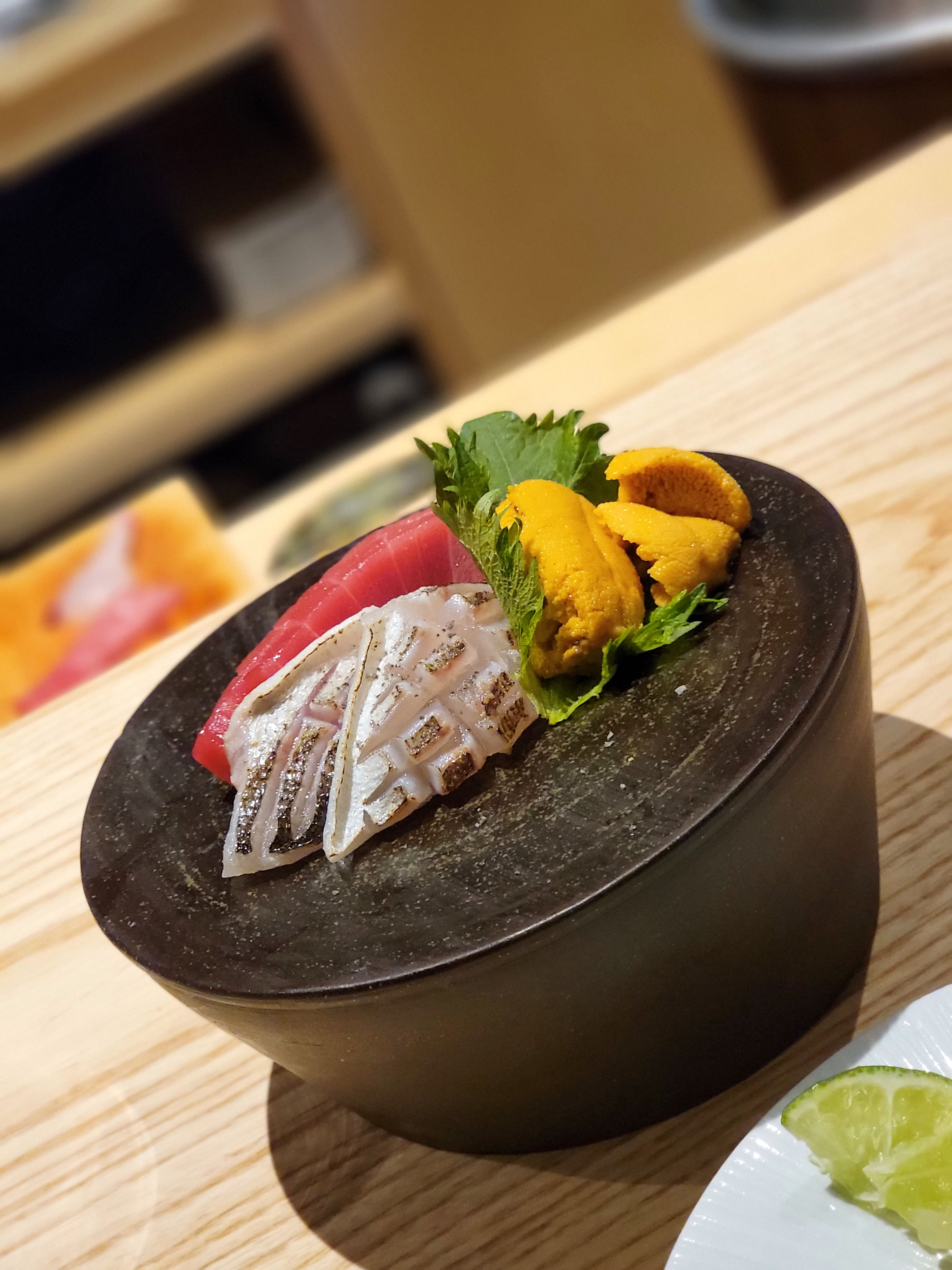 My only gripe: they should offer a combo of both nigiri and sashimi, since some of the nigiri sushi looked really interesting with wild toppings and flavors, while the sashimi pieces were more traditional and plain. A mixed piece menu would be a great way to get a taste of both modern and traditional.