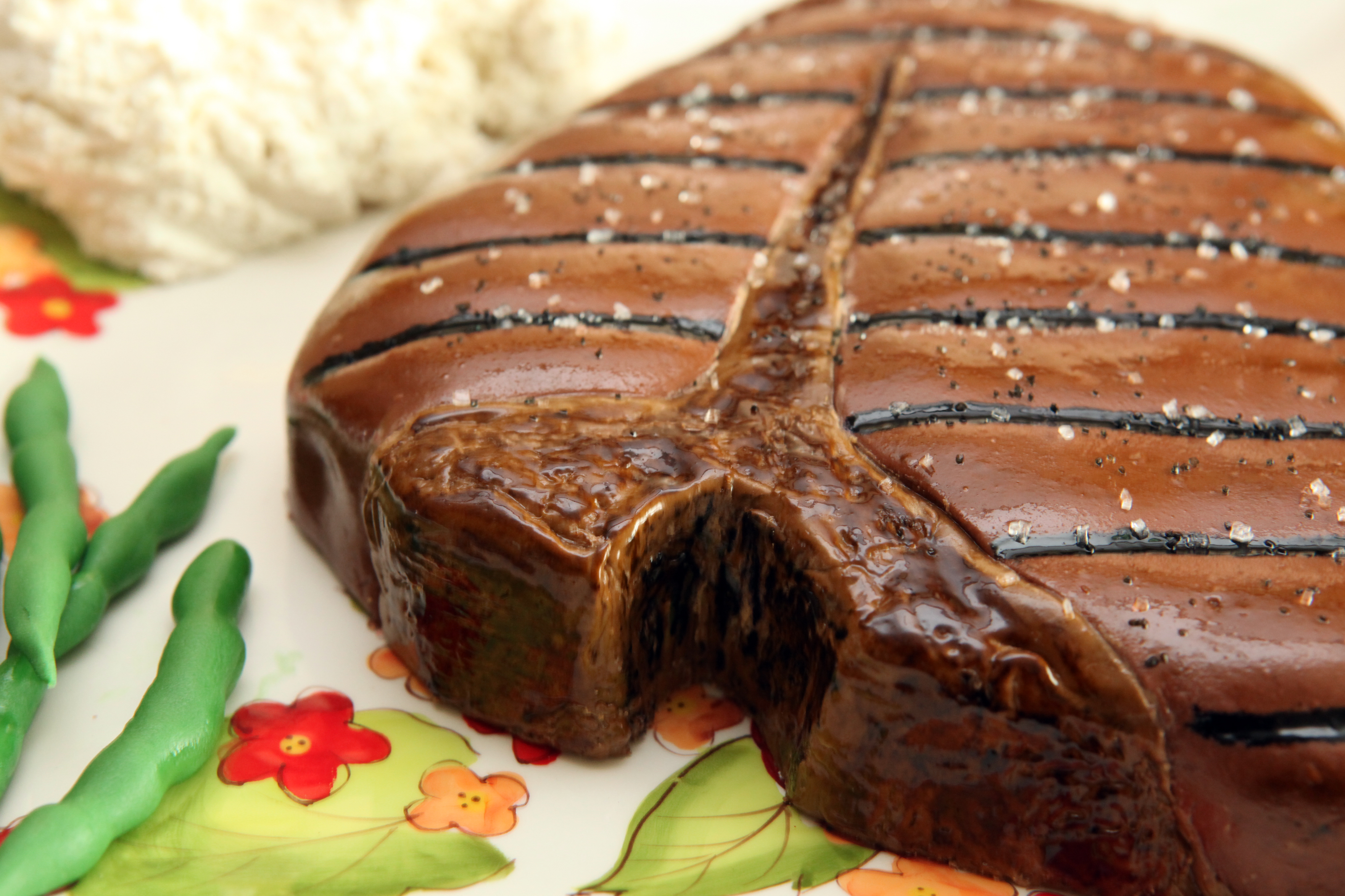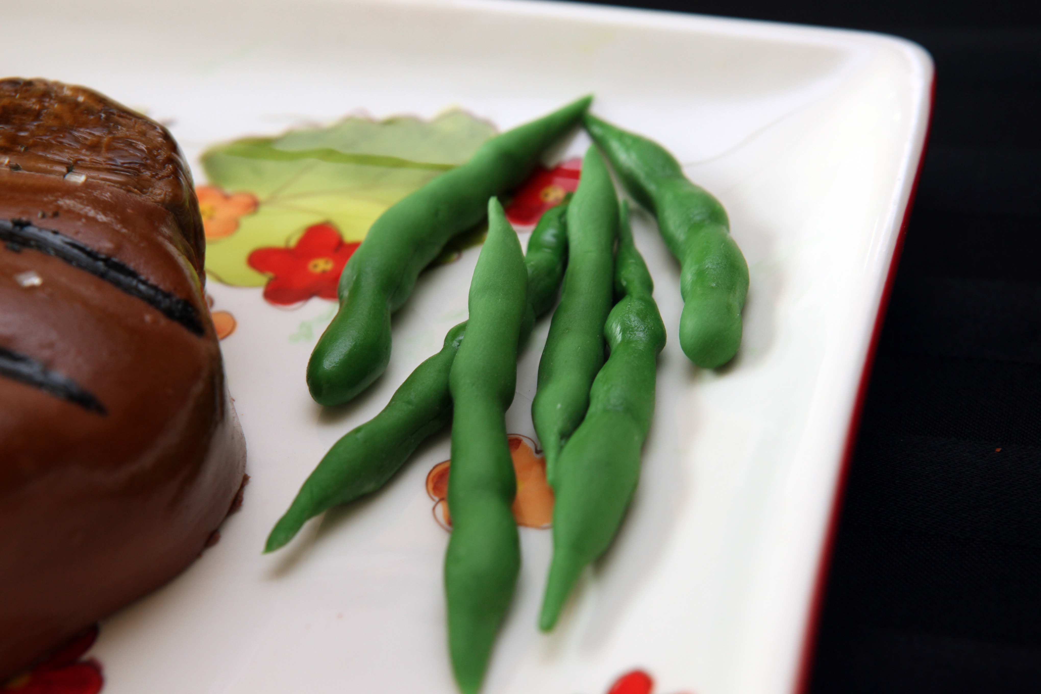 The details are where this piece really shines though. That t-bone is absolute perfection. It looks like it is REAL and glistening. Made from fondant as well. And on top there is black and white sugar to look like kosher salt and fresh cracked pepper.