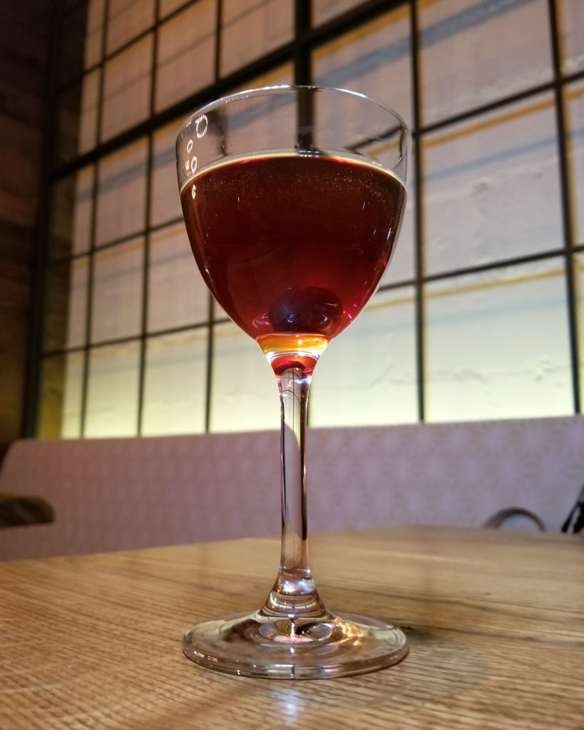 The Throne of Blood is made with Japanese whisky, Bourbon Antica, Torino and bitters. This is similar to a Manhattan.