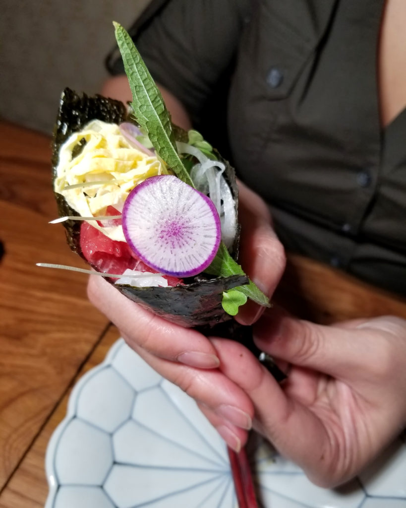 They have pre-set menus for the hand rolls (3, 4, 5 and 6 count). We did the 6-count, and my wife was able to swap the scallop out for a second crab roll since she is allergic. It would have been cool if they let her pick a different protein of equal or lesser value for the swap, rather than making her double up on a roll. For example, the eel roll is $8 a la carte, and so is the scallop. Why not let her replace the scallop with eel instead of making her choose a second crab or tuna? Seemed weird.
