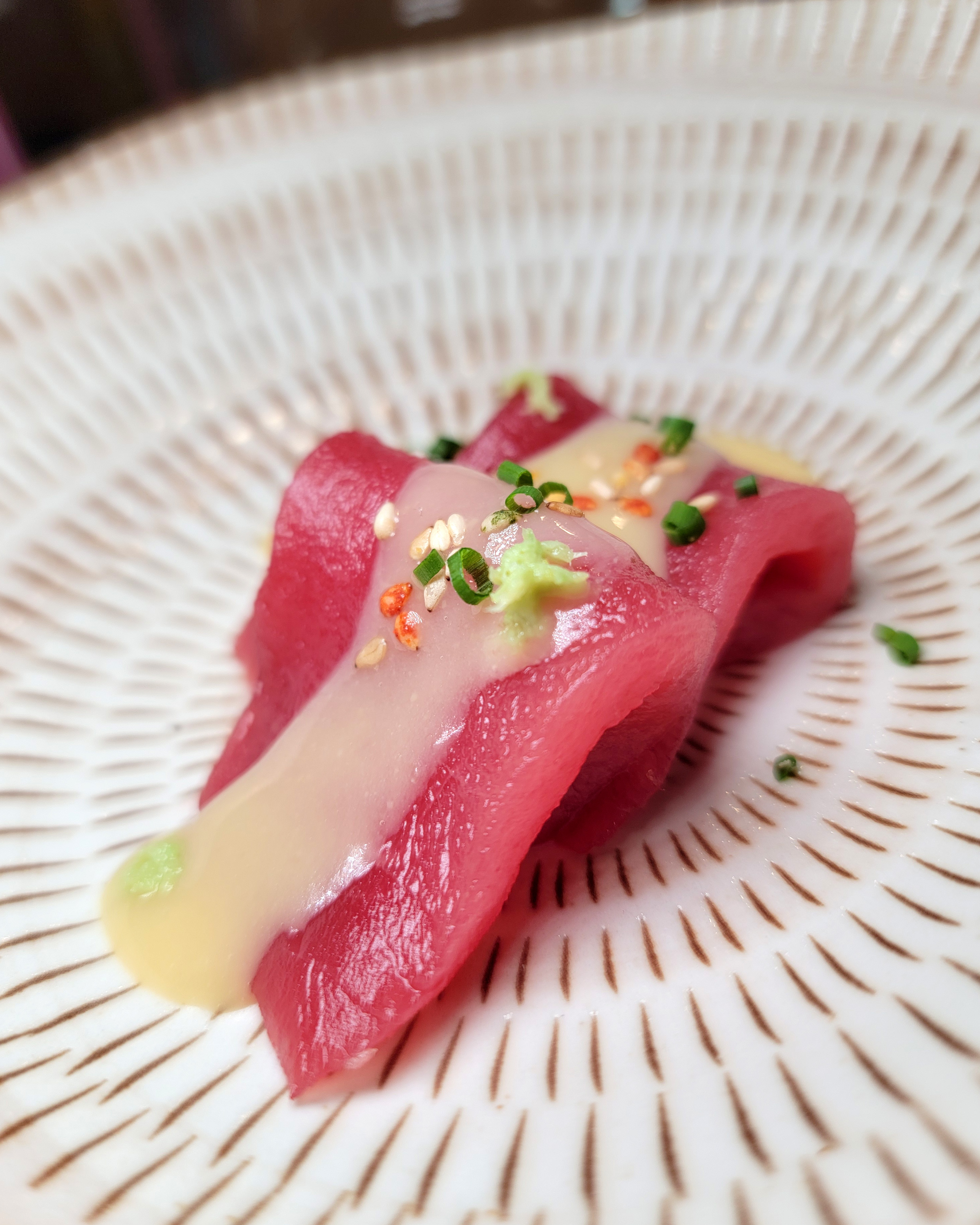 We tried both toasts. One was like a tuna tartate, and the other was trout roe with truffle honey. The trout roe was clearly the winner here, and it was easily one of the best bites of the night.
