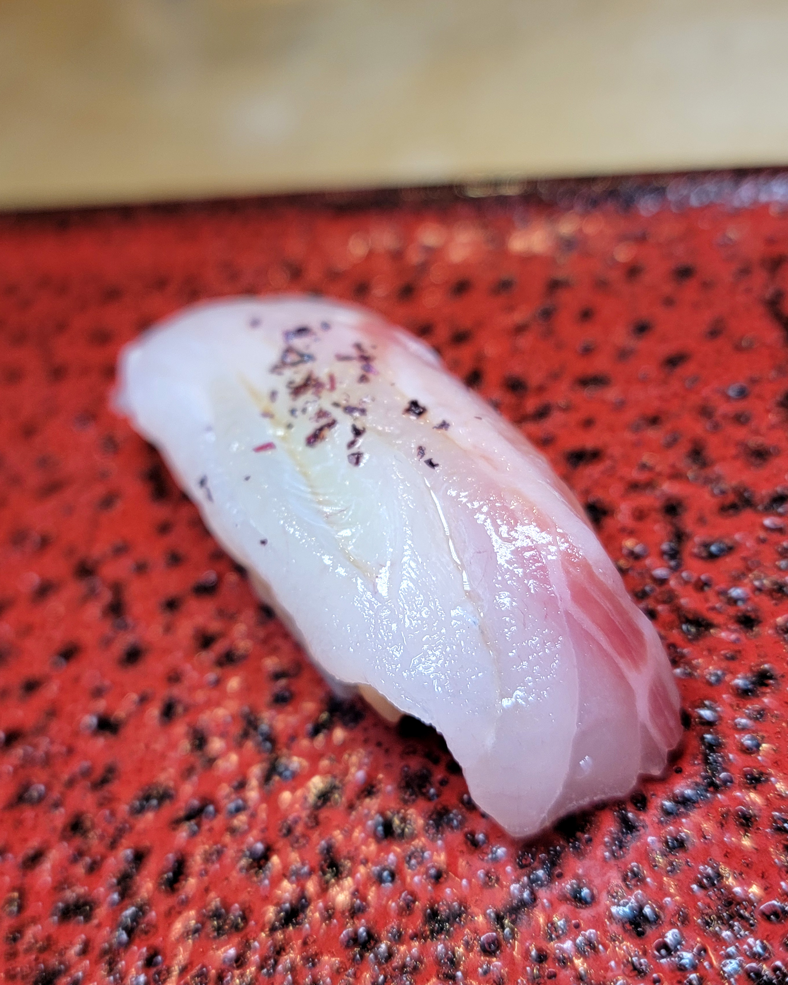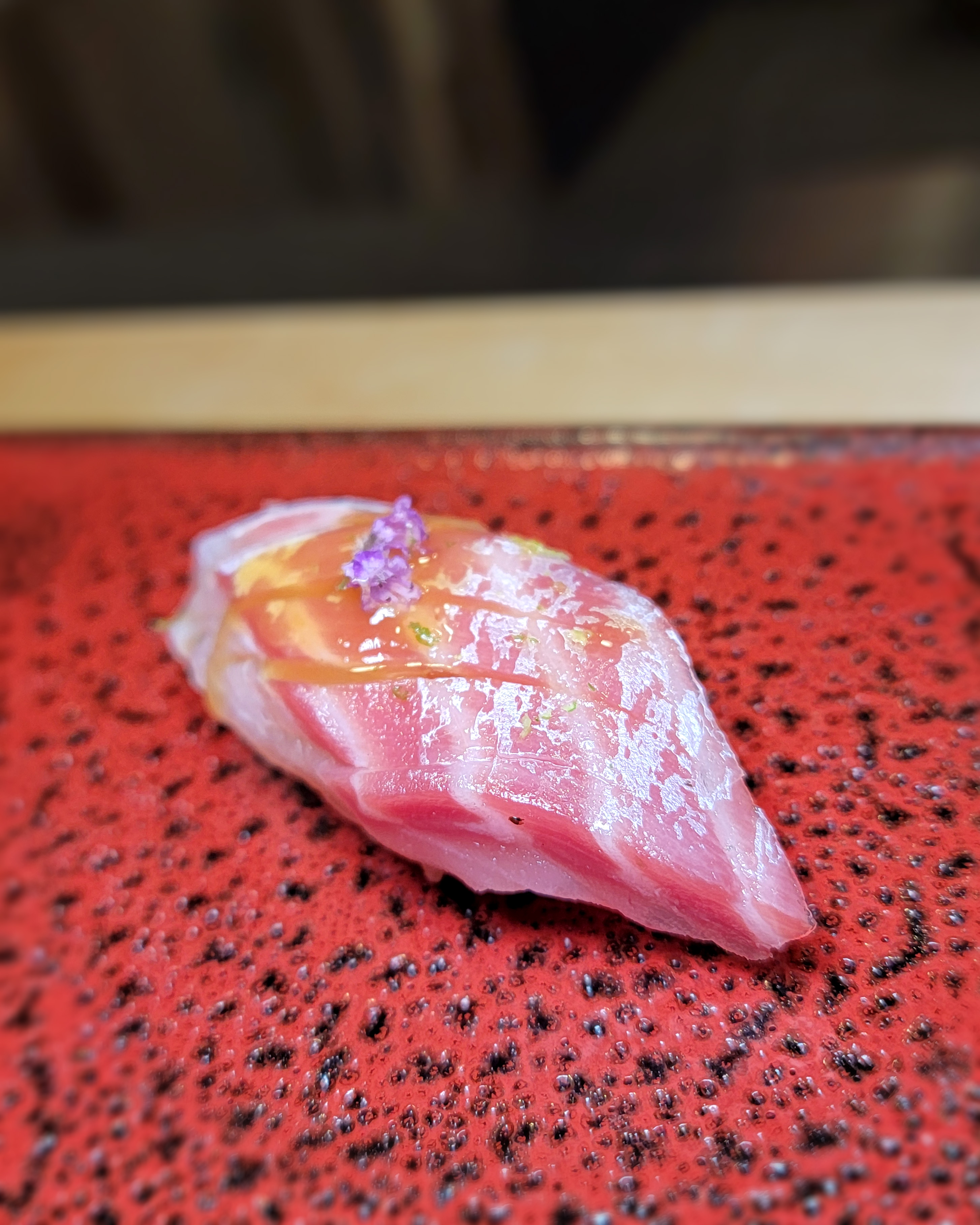 Once you’re finished with the 14-course omakase, you get two rounds of “all you can eat” sushi ordering, which is limited to a selection of eel, scallop, lean tuna or fatty tuna. The toppings and garnishes are done away with during this time (just a brush of sauce, and some torching for the fatty tuna), and you’ll be charged $6 per piece for any nigiri that you order but don’t finish. The record is 72 pieces eaten. Insane.