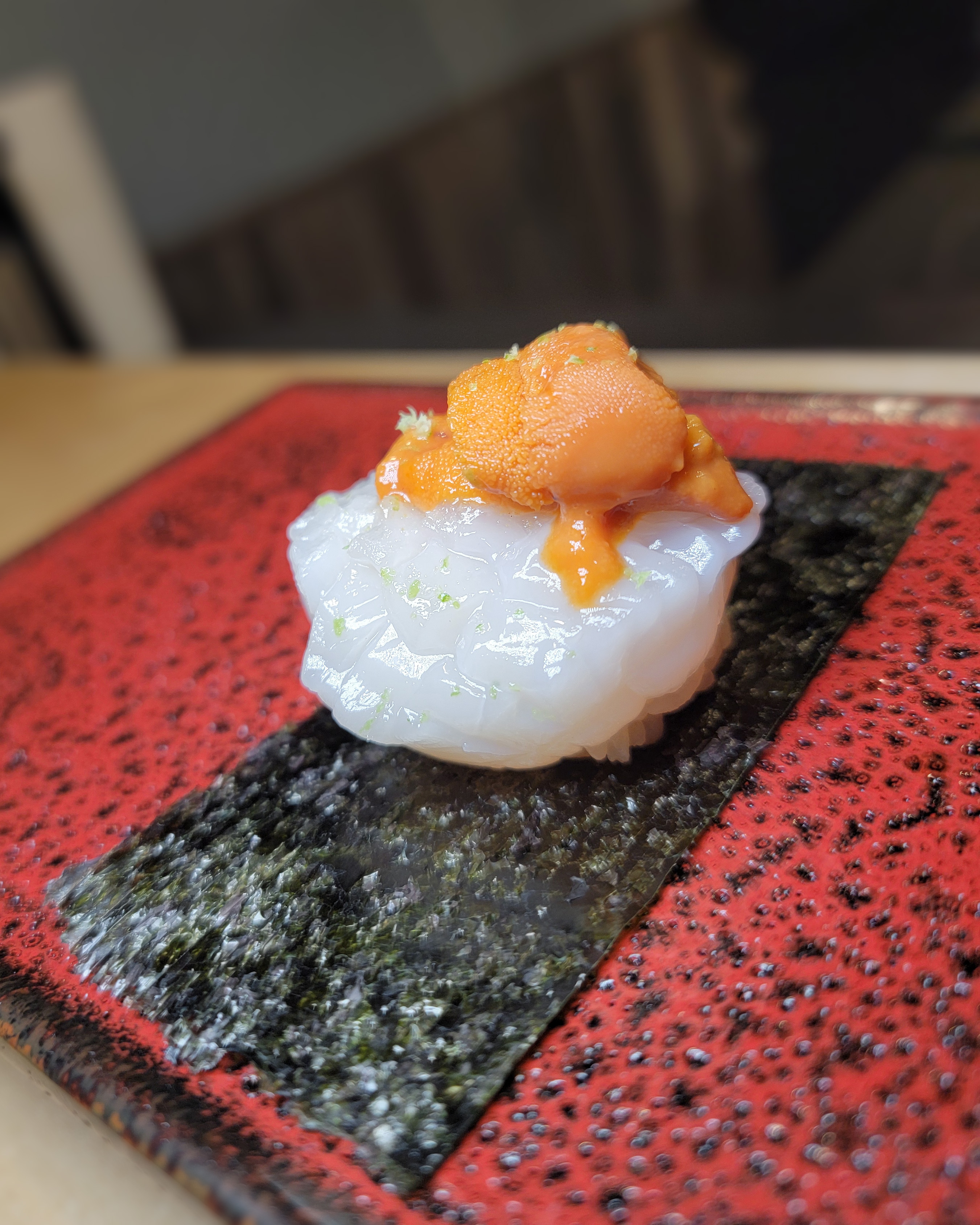 Since my wife can’t have scallop, they gave her this uni piece instead: