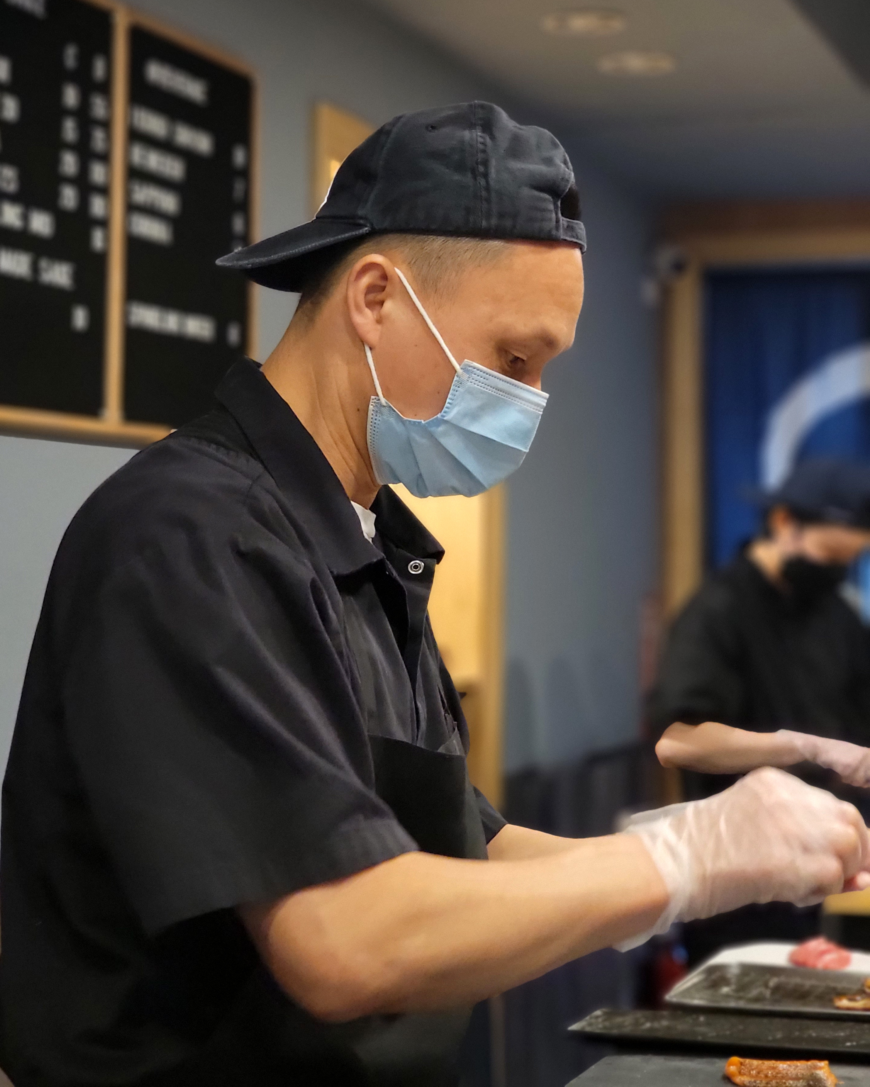 Below is the chef, and the final piece (which was our favorite): Fatty tuna belly with caviar and truffle oil.