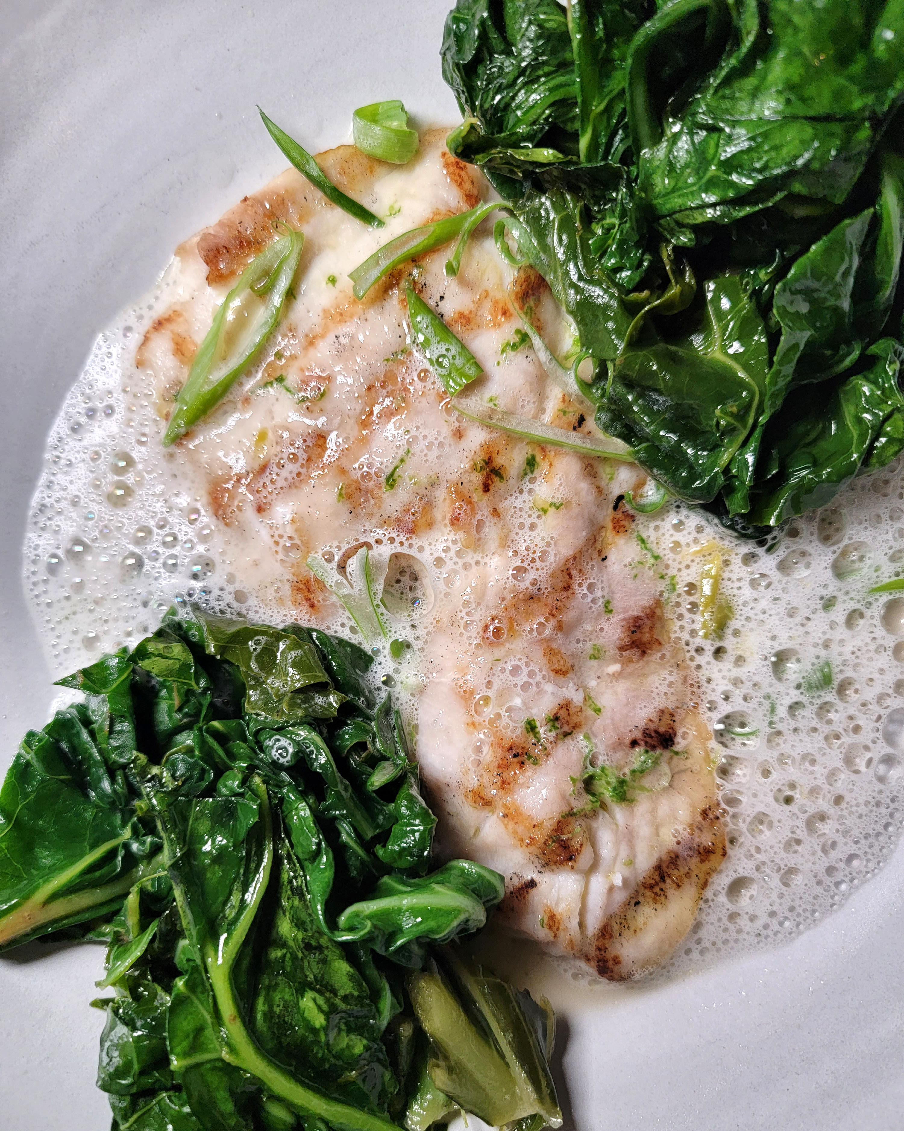 For entrees, we had a pasta dish consisting of a bolognese style sauce with shells, and grilled triggerfish with collards in broth.