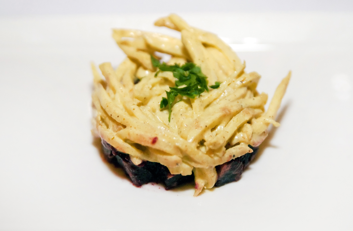 These were super light and healthy; a great way to start the meal without going heavy. The curried chicken was a nice change-up from what I usually expect in a lettuce wrap. It was almost like a Thai or Indian taco, if you will. The beets added a nice contrast of color with that pop of red, and the iceberg lettuce added a great textural element of crunch to the tender minced chicken.